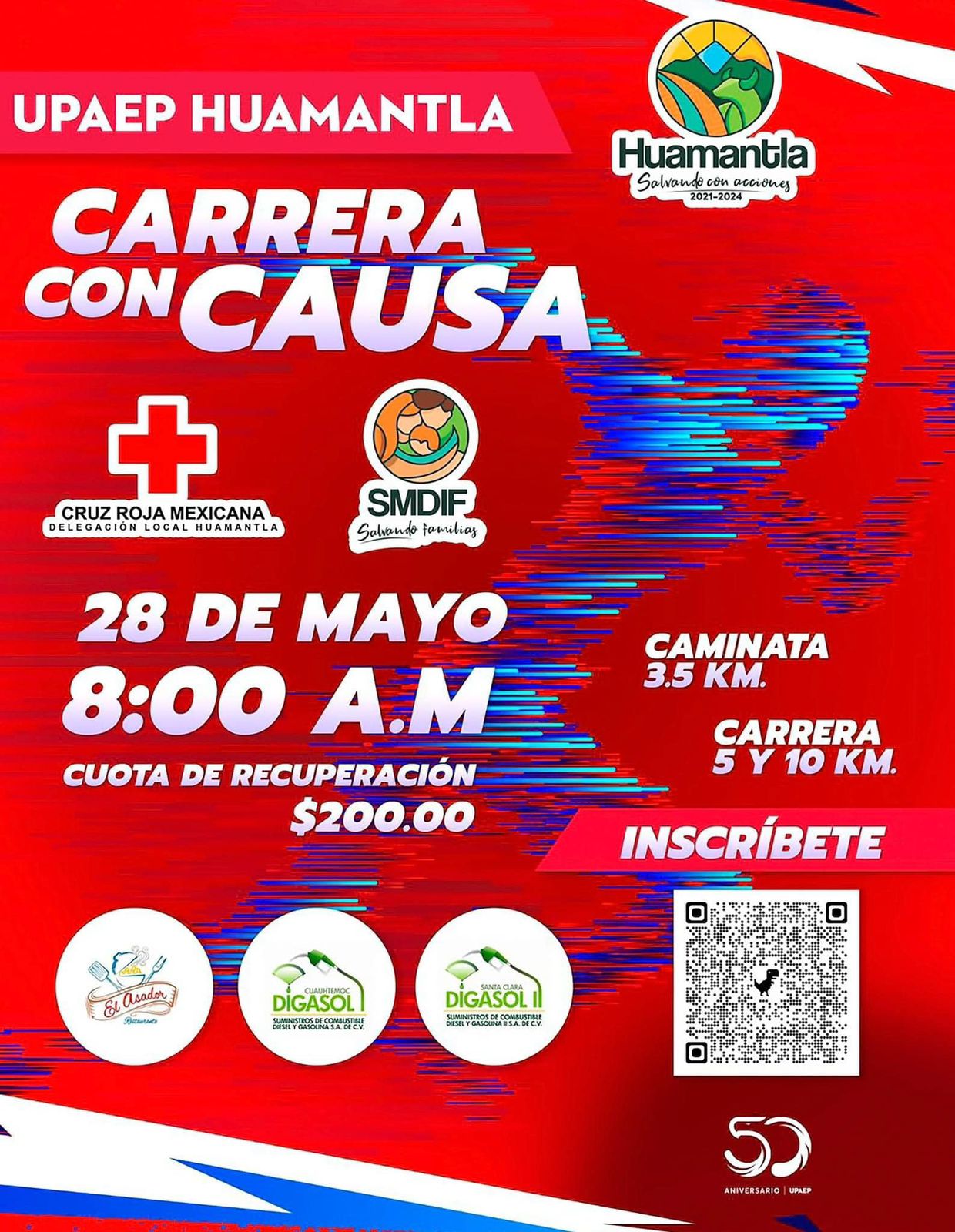 El Sistema Municipal para el Desarrollo Integral de la Familia (SMDIF) Huamantla, en coordinación con la UPAEP Huamantla, invitan a todas las escuelas y público en general a participar en la Carrera con Causa Huamantla 2023, en marco del 50 aniversario de esta institución educativa, misma que se llevará a cabo el 28 de mayo a las 8:00 horas.