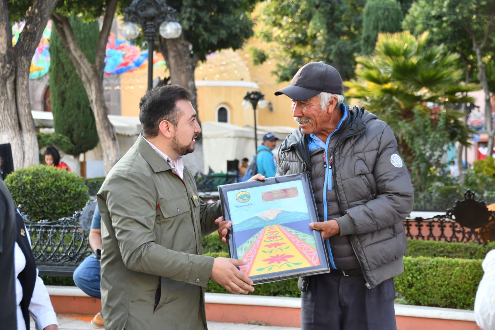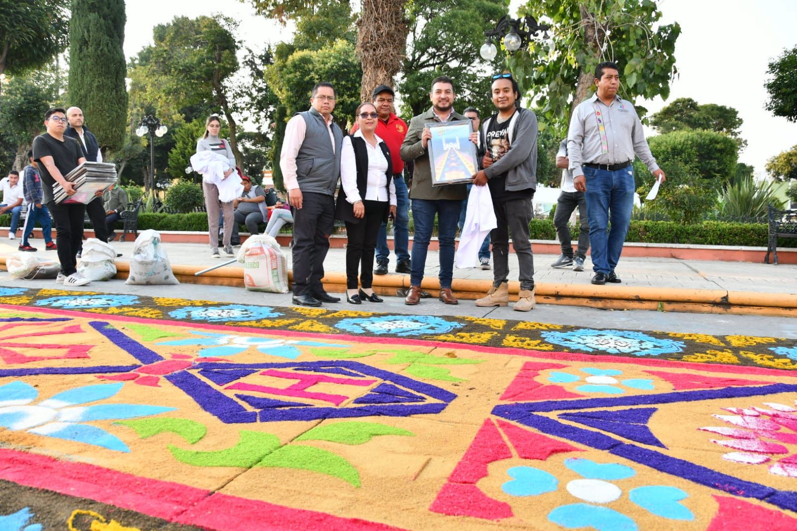 Con motivo de la celebración de Corpus Christi en el Pueblo Mágico, el presidente municipal, Salvador Santos Cedillo, entregó reconocimientos a los artesanos que pertenecen a la Asociación de Alfombristas de Huamantla que participaron este día.