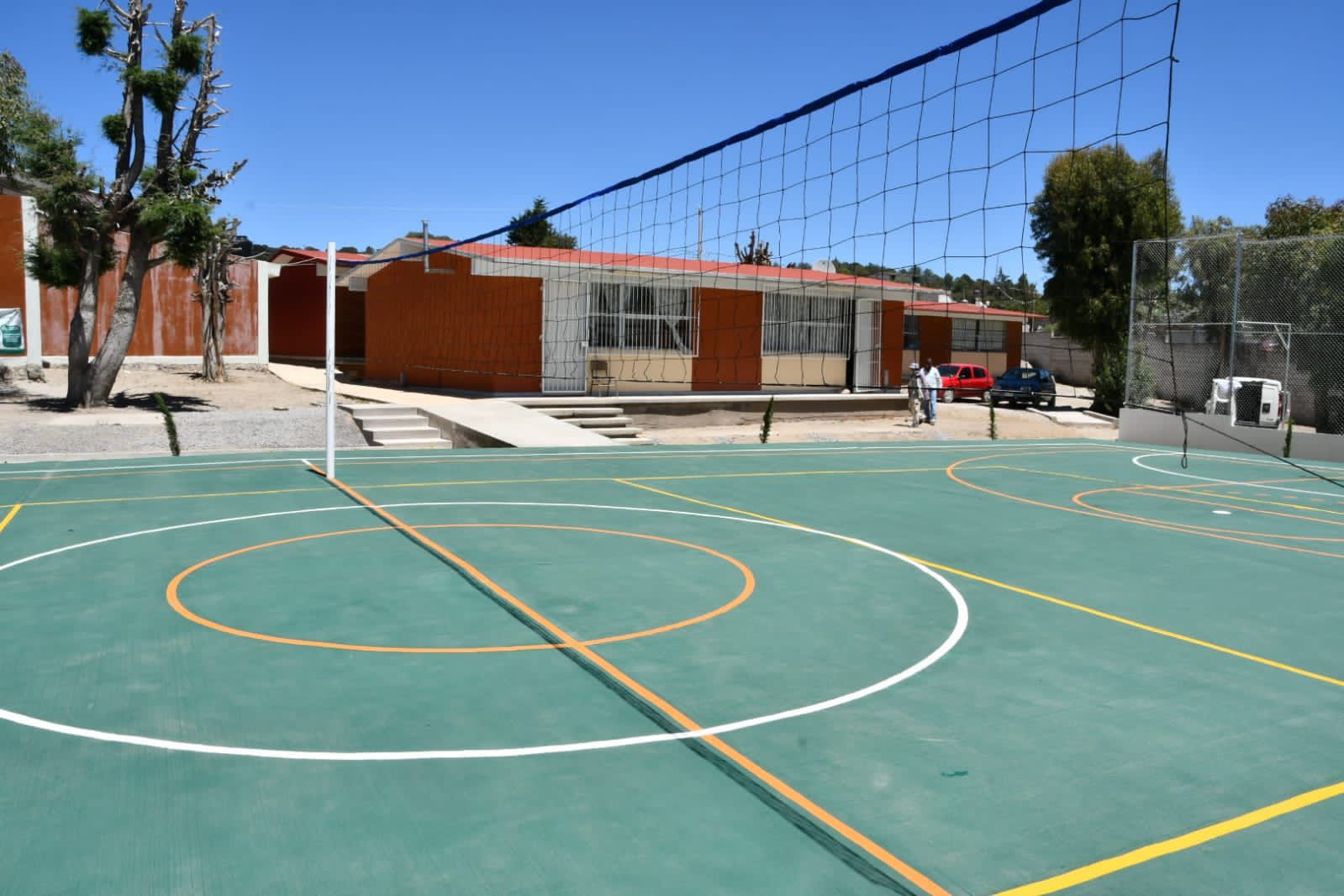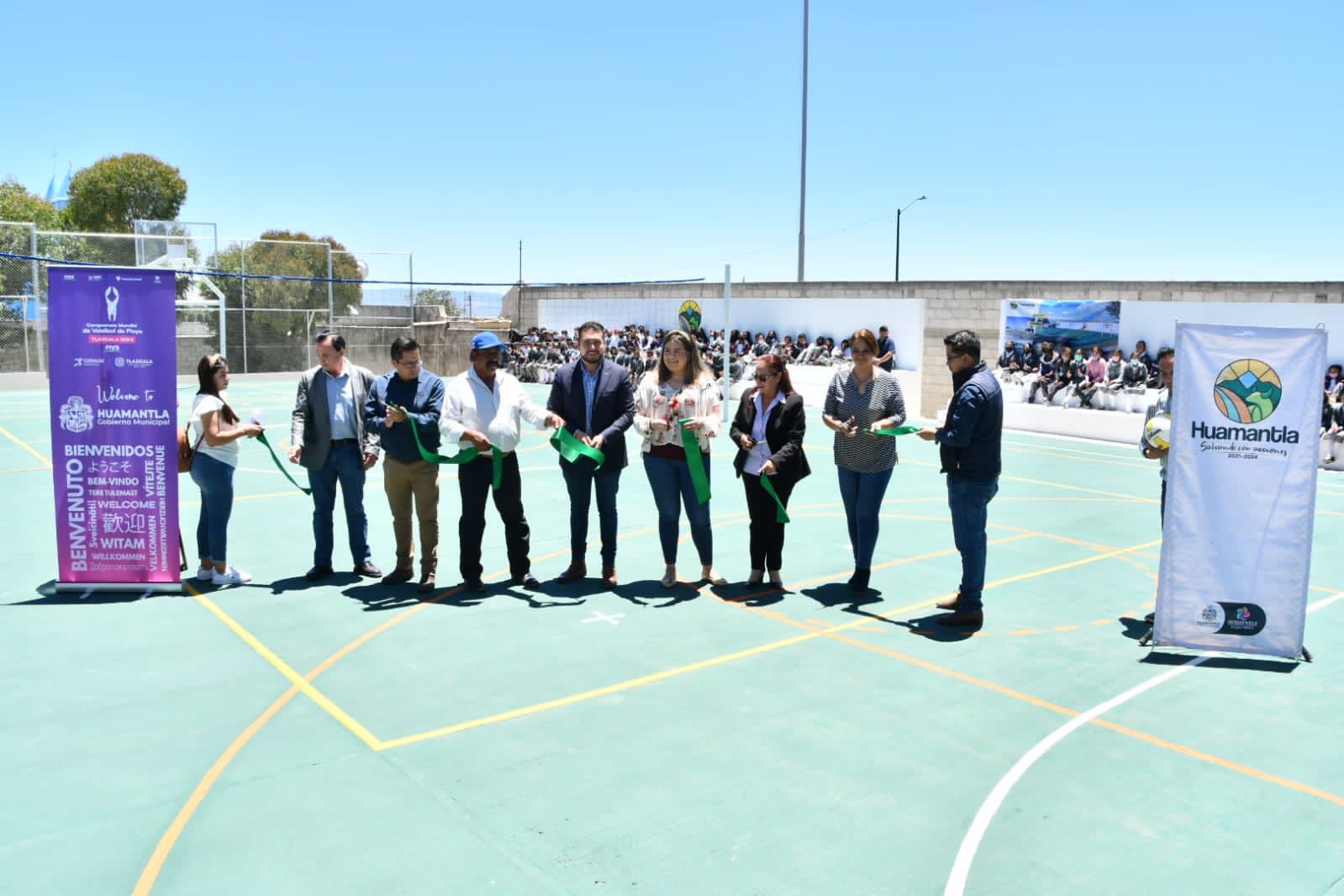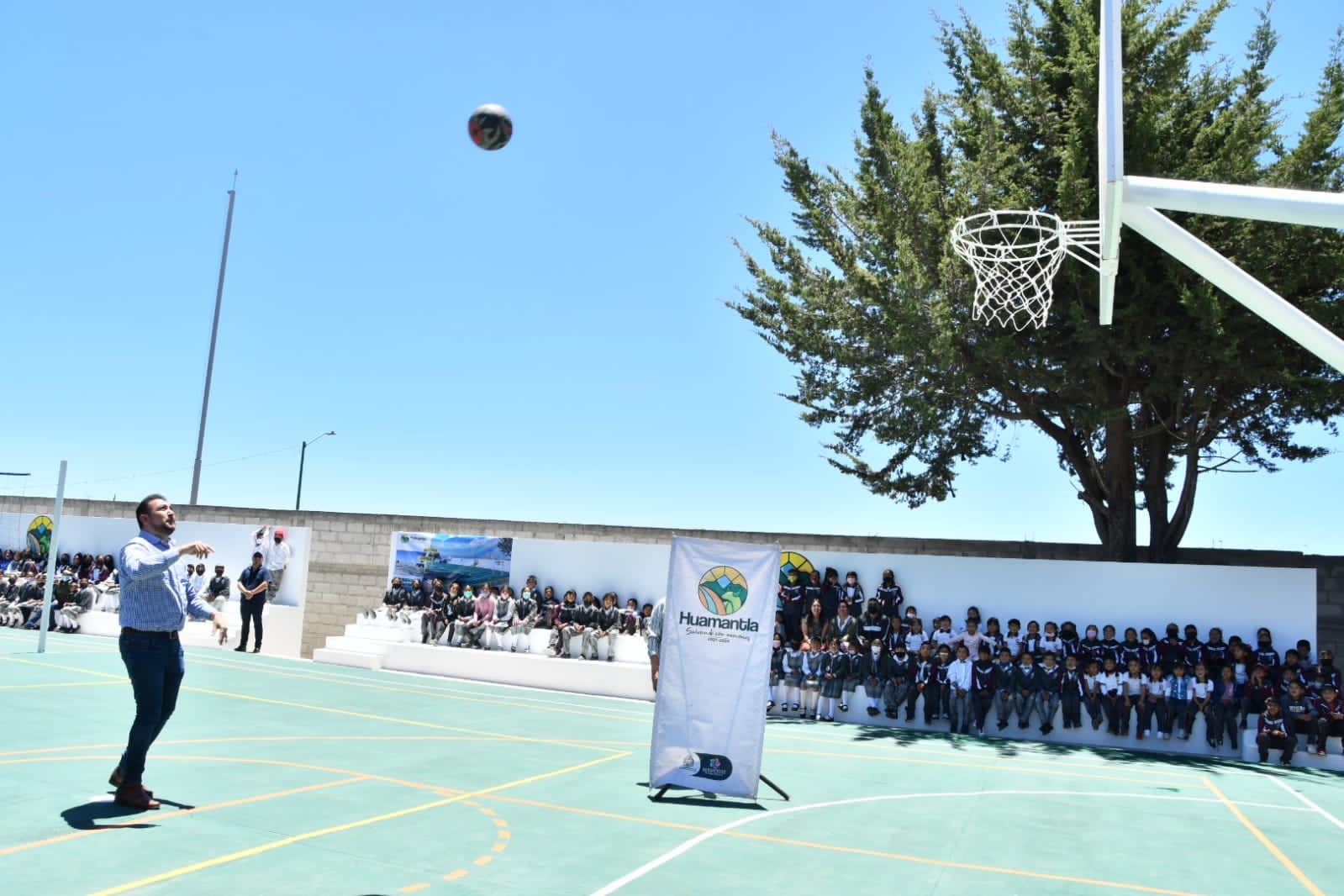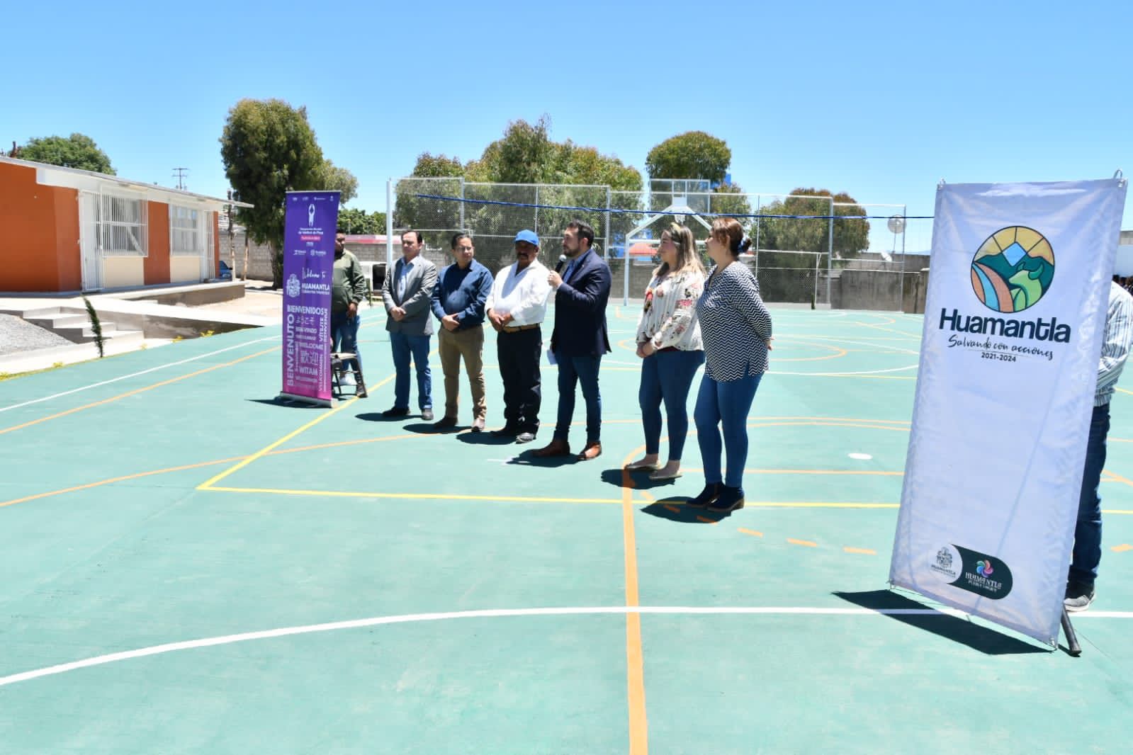 Al inaugurar la nueva cancha deportiva en la Primaria Justo Sierra del Pueblo Los Pilares, el alcalde de Huamantla, Salvador Santos Cedillo, señaló que su administración continuará apoyando a las escuelas del municipio para que los estudiantes tengan mejores espacios de convivencia y recreación.