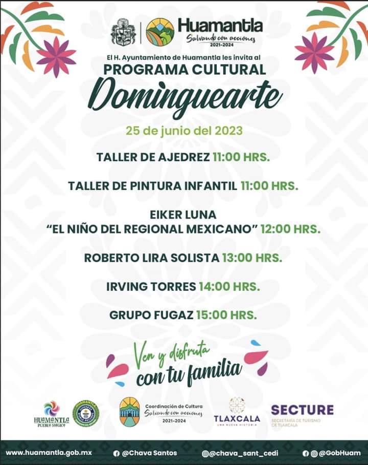 Disfruta el último domingo del mes en el kiosco del Parque Juárez, donde talentos locales y regionales llevarán diversión y entretenimiento a las familias huamantlecas y visitantes con el programa cultural “Dominguearte”.