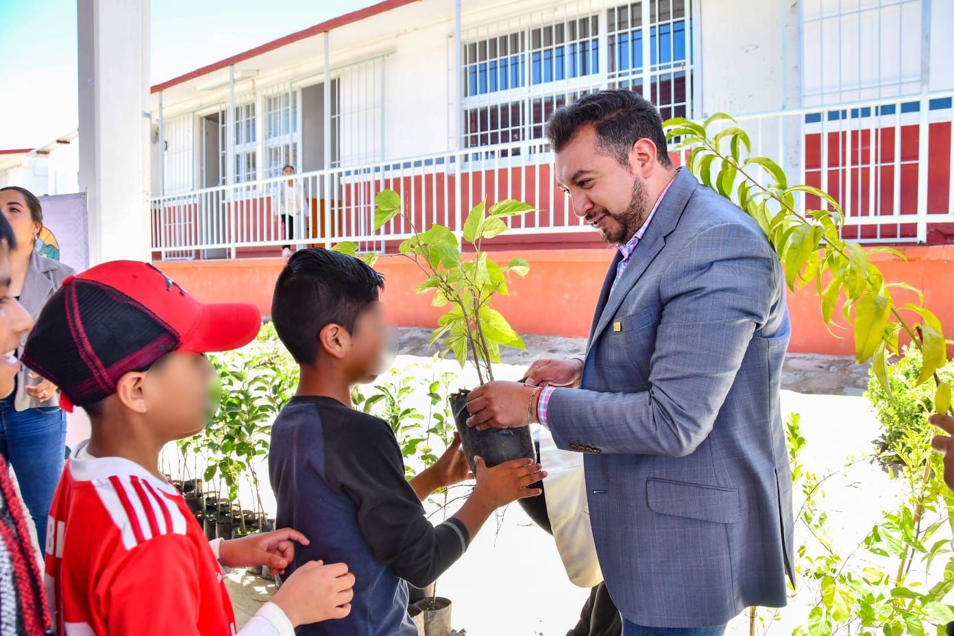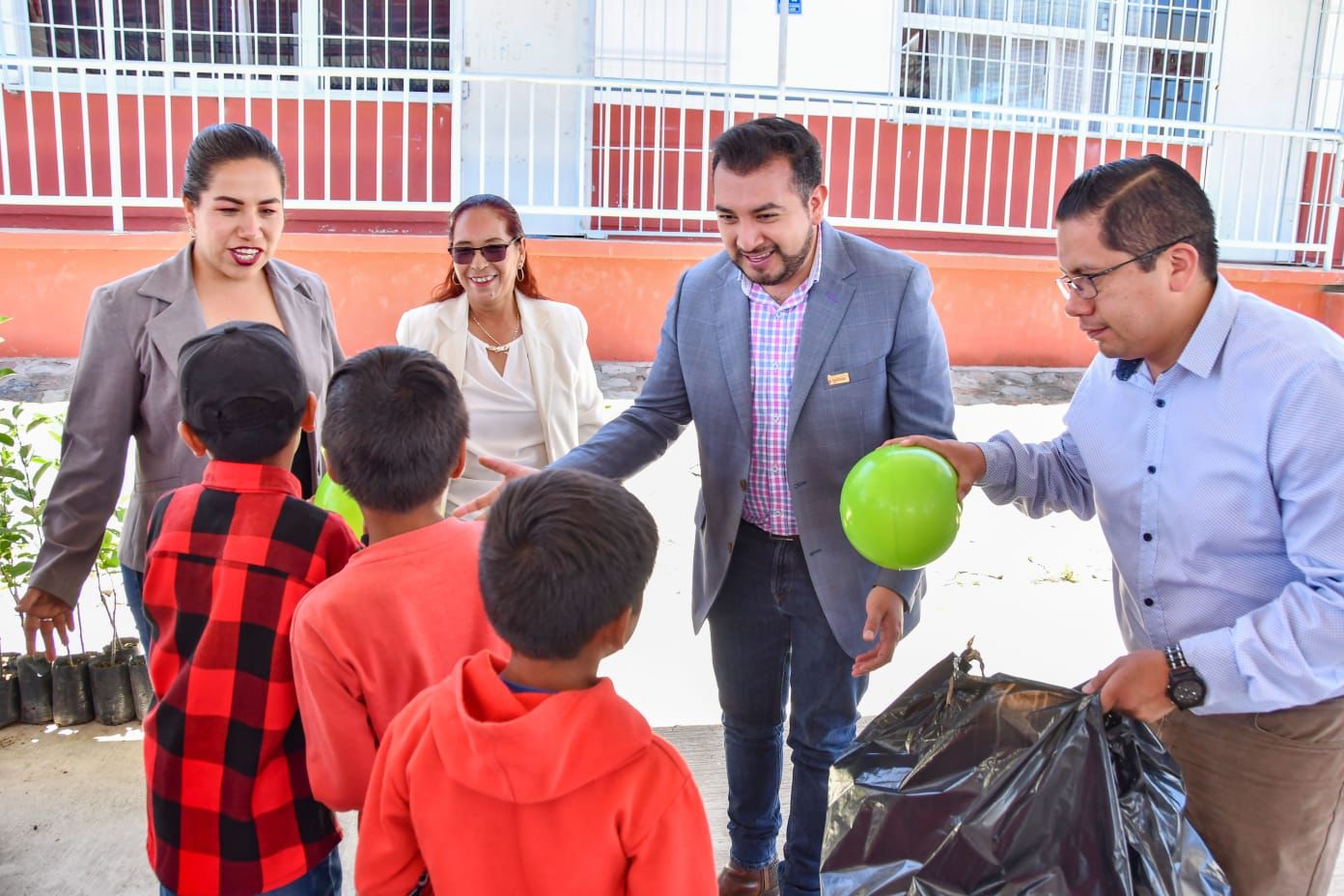 Como parte de las acciones que impulsa el gobierno municipal de Huamantla a favor del medio ambiente, este día el Edil Salvador Santos Cedillo, entregó árboles frutales a los estudiantes de la Escuela Vicente Guerrero de la comunidad de San José Xicohténcatl.