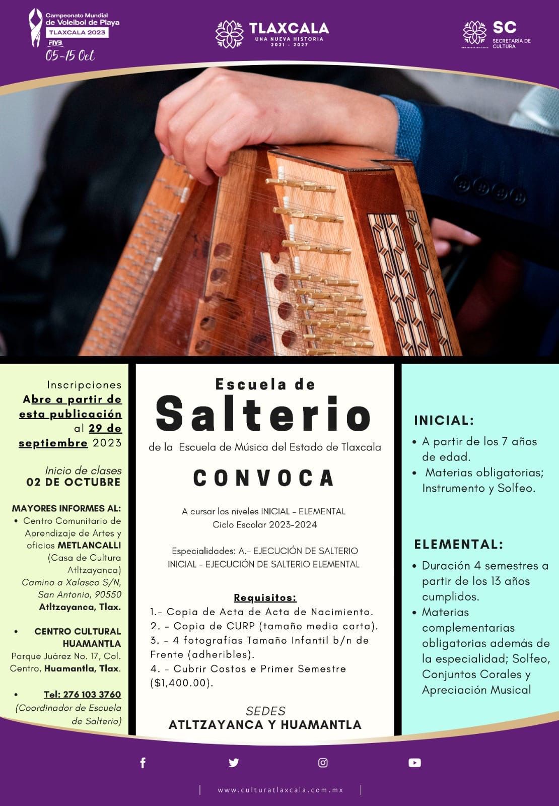 El gobierno municipal que preside Salvador Santos Cedillo, invita a niños y jóvenes a formar parte de la Escuela de Salterio que se ubica en el Centro Cultural de Huamantla, perteneciente a la Escuela de Música del Estado de Tlaxcala de la Secretaría de Cultura (SC).