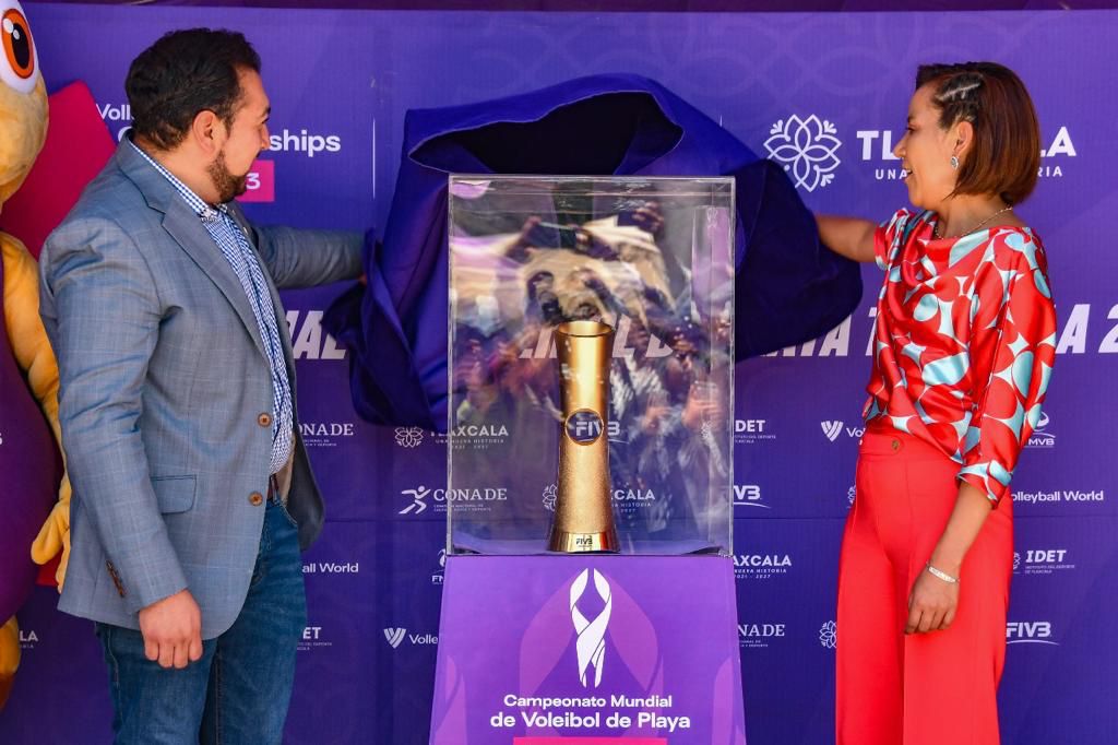 A 22 días de que inicie el Campeonato Mundial de Voleibol de Playa 2023, el trofeo que le pertenecerá a las y los triunfadores de este torneo internacional llegó al Pueblo Mágico de Huamantla y desató la fiebre mundialista entre los habitantes que, con porras y algarabía, admiraron este premio.