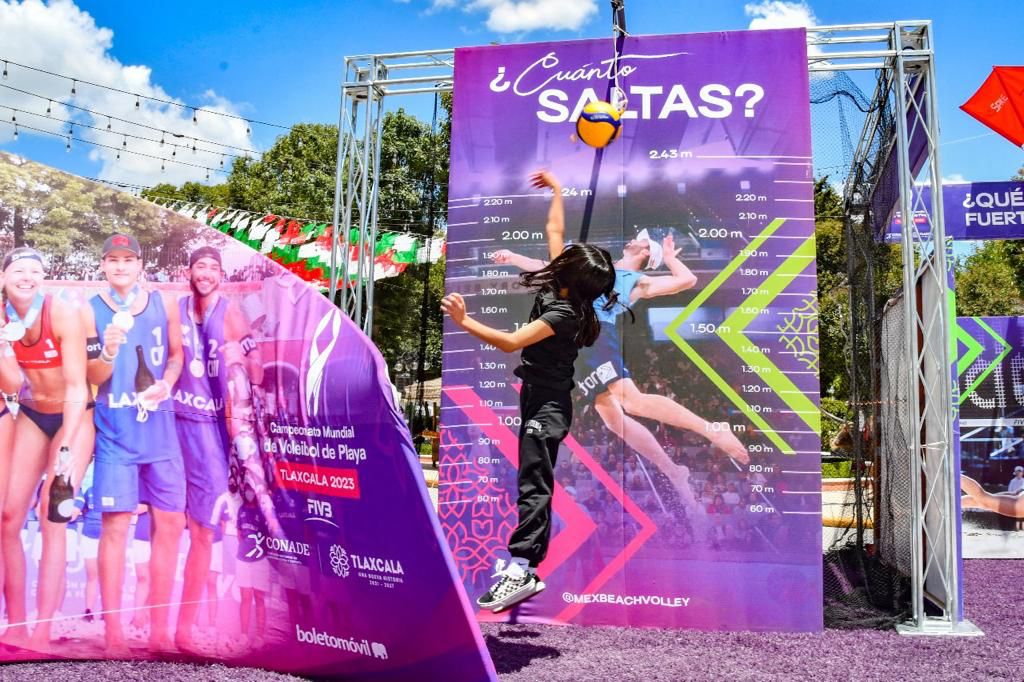 Como parte de las actividades del Trophy Tour Tlaxcala 2023, se colocaron stands para tomarse fotografías, canchas para practicar voleibol, dinámicas para medir el salto y la fuerza de los participantes, entre otras.