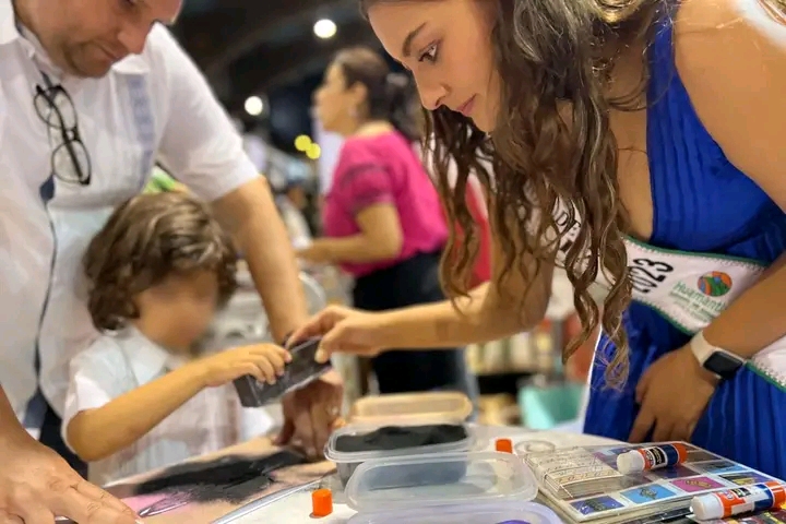 Como parte de la visita al módulo turístico del Pueblo Mágico de Huamantla, chicos y grandes participaban en las diferentes actividades, donde realizaban una mini alfombra de aserrín, que al terminarla se les obsequiaba como un recuerdo de las tradiciones más importantes de Huamantla, y de Tlaxcala.