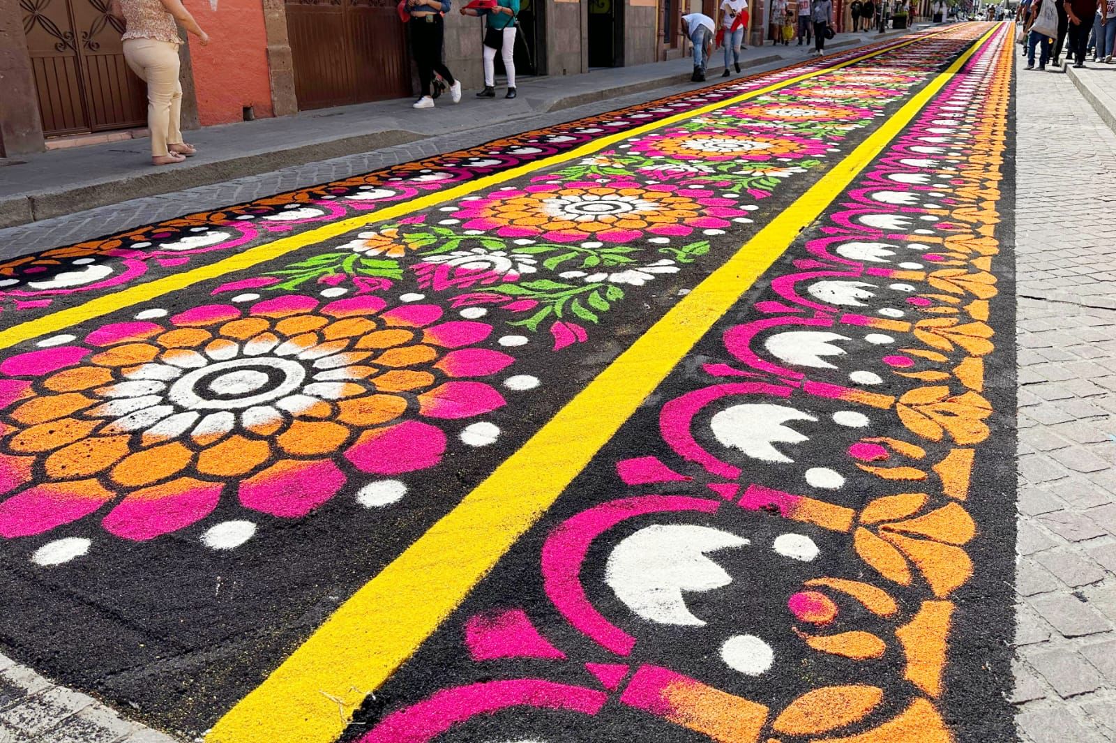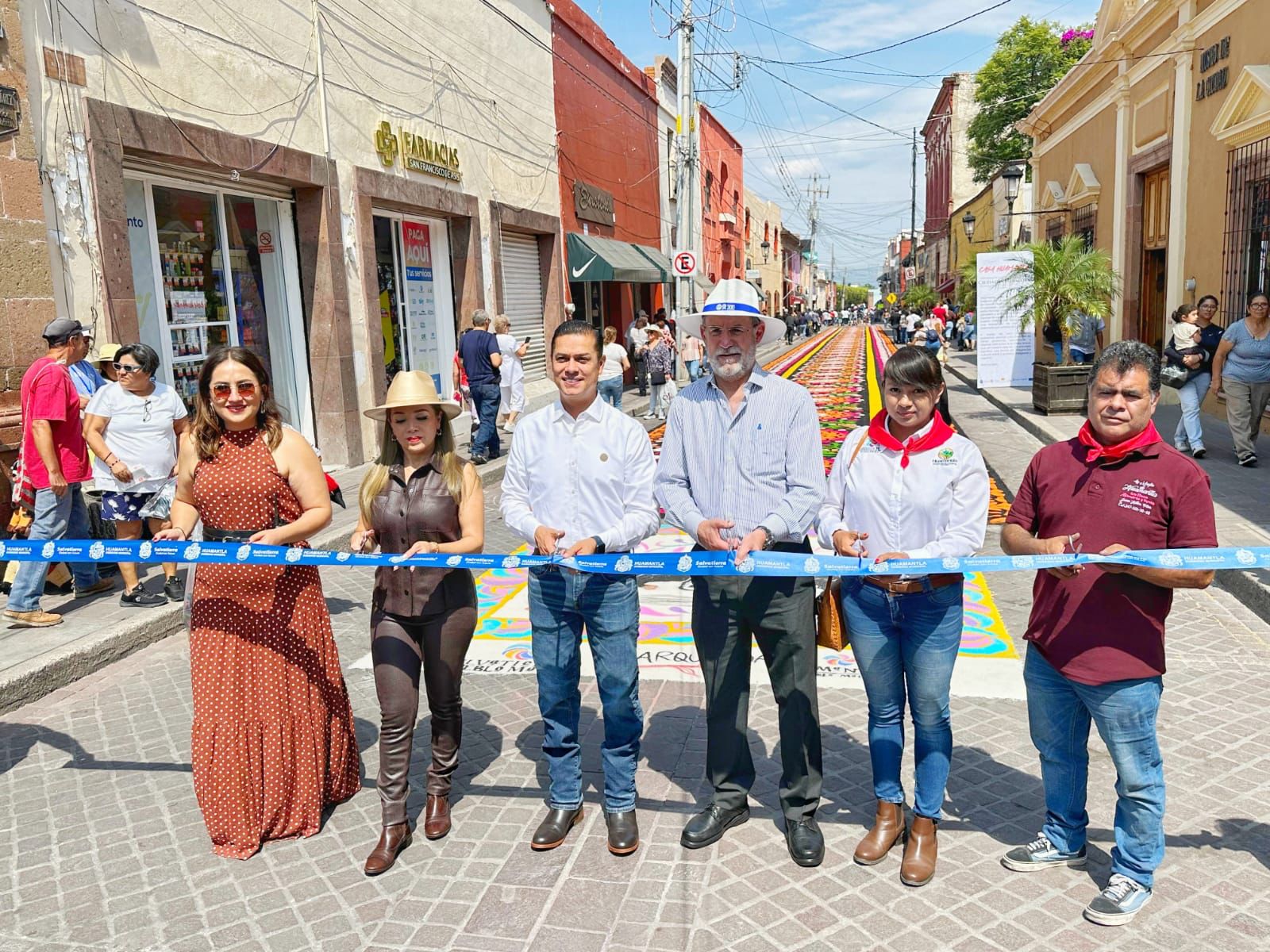 En el marco de los festejos de la “Marquesada 2023”, en el Pueblo Mágico de Salvatierra, Guanajuato, se inauguró un extraordinario tapete de arte efímero que rinde homenaje a la tradición de Huamantla.