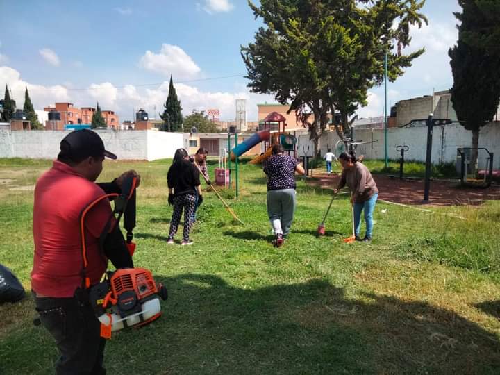 Cerca de 20 personas entre vecinos y elementos de seguridad de Huamantla, limpiaron las รกreas verdes, como parte del programa โSalvando espacios con tu amigo policรญaโ, y tener asรญ lugares dignos para una mejor convivencia familiar.
