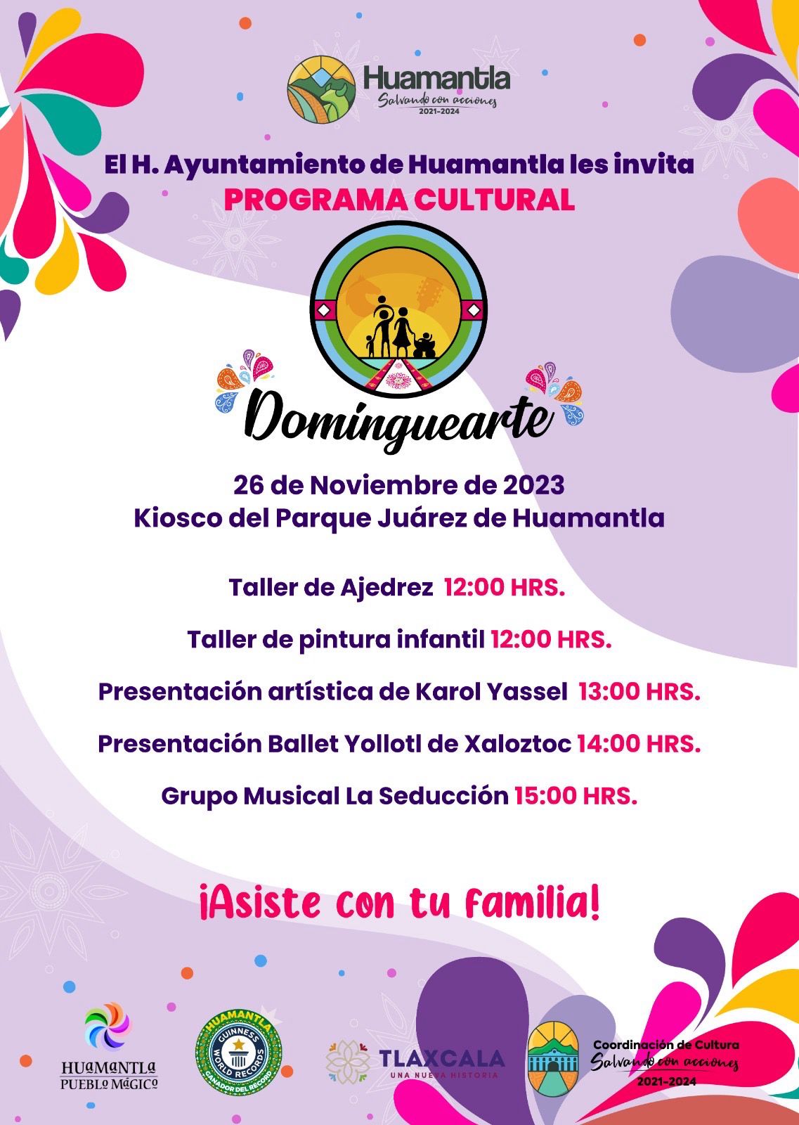 ʜᴜᴀᴍᴀɴᴛʟᴀ, ᴛʟᴀx., 25 ᴅᴇ ɴᴏᴠɪᴇᴍʙʀᴇ 2023|El H. Ayuntamiento de Huamantla que preside Salvador Santos Cedillo, a través de la Coordinación de Cultura, impulsa cada domingo el programa “Dominguearte”, donde se presenta una cartelera artística y cultural llena de actividades dinámicas para chicos y grandes.