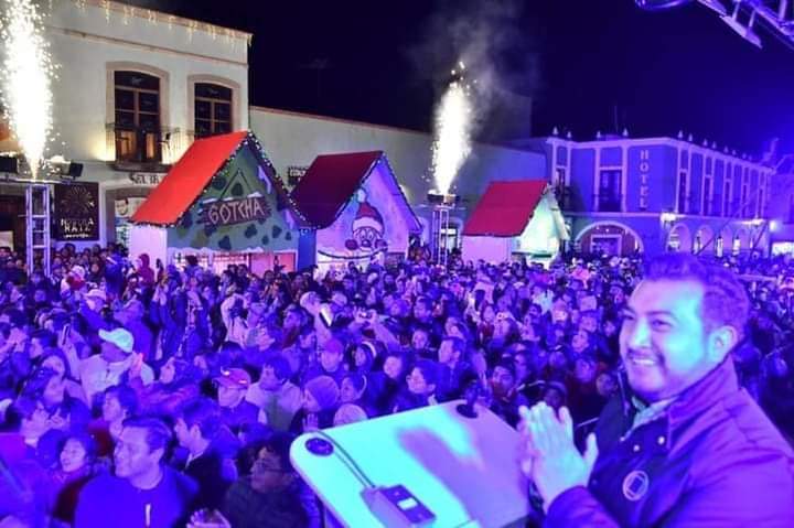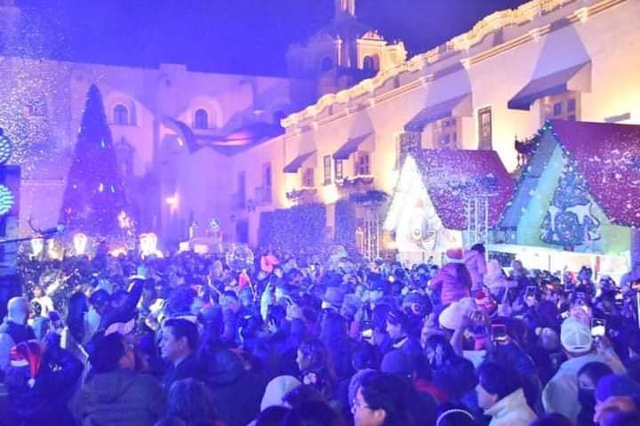 La alegrรญa y la emociรณn se desbordรณ cuando el alcalde hizo el encendido monumental del รกrbol de navidad en la explanada del Parque Juรกrez, donde todo el zรณcalo se iluminรณ y pintรณ de colores navideรฑos, recreando asรญ un paisaje de ensueรฑo al tener bastones con destellos, una macro piรฑata y el tradicional nacimiento, un caballo dorado y otros adornos que dieron luz a este Pueblo Mรกgico.