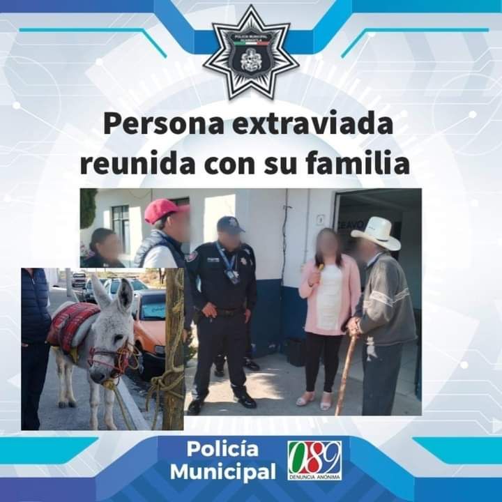Luego de un reporte ciudadano que informaba que sobre la calle Josefa Ortiz de Domรญnguez, caminaba una persona mayor arriando a un burro con una actitud desorientada.