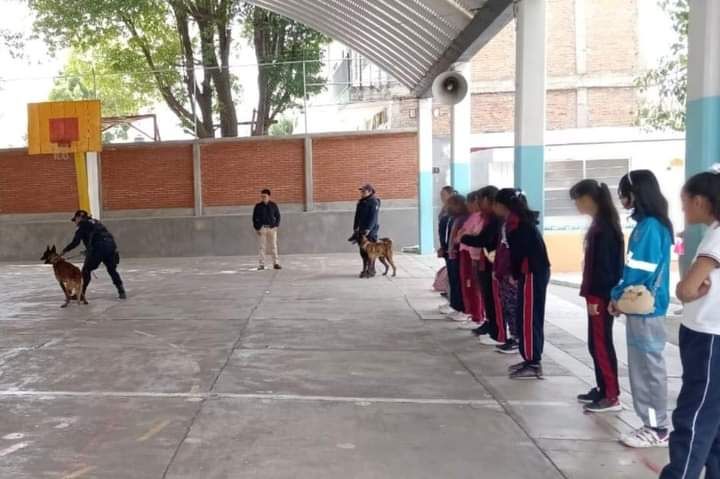 Para integrar a los alumnos en estas dinámicas grupales, el personal de Proximidad Social realizó demostraciones de cómo funciona el agrupamiento canino K-9, al tiempo que permitió el acercamiento con los canes para generar confianza con la población infantil, acción que ayuda a recobrar la confianza hacia la actuación policial.