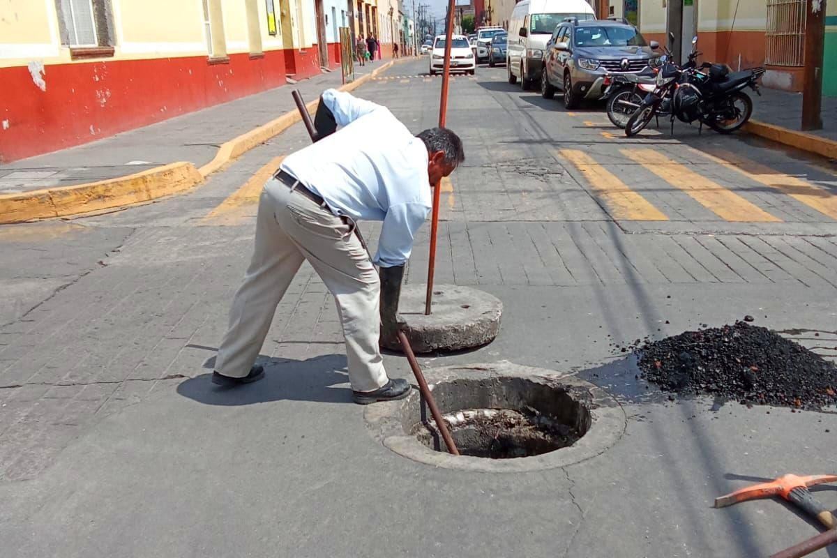 La Comisión de Agua Potable y Alcantarillado del Municipio de Huamantla (Capamh) realiza importantes labores de mantenimiento y desazolve en pozo de visita de la red de drenaje y alcantarillado entre calle Reforma y Zaragoza.