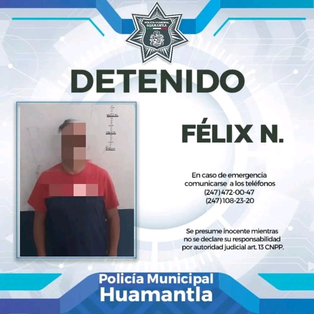 Tras el seรฑalamiento directo por parte de testigos, policรญas municipales procedieron a detener a Fรฉlix N. de 42 aรฑos de edad, al tiempo que le leรญan sus derechos antes de trasladarlo a la Comisarรญa de Huamantla. El vehรญculo involucrado tambiรฉn fue asegurado y puesto a disposiciรณn de las autoridades.
