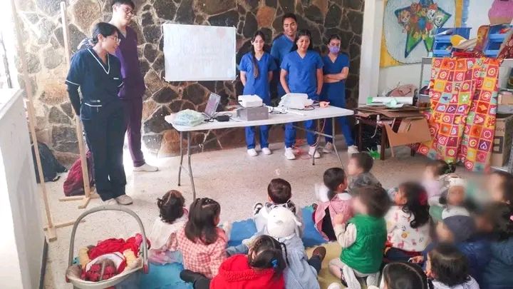 La presentaciรณn incluyรณ demostraciones prรกcticas que mantuvieron la atenciรณn de las niรฑas y niรฑos, haciรฉndoles mรกs fรกcil entender la relevancia de cuidar su salud bucal.