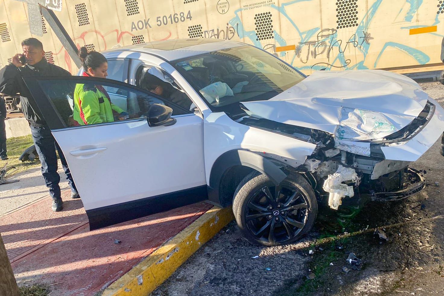 ๐La maรฑana de este viernes, elementos de Protecciรณn Civil, en coordinaciรณn con la policรญa municipal, estatal, Guardia Nacional y paramรฉdicos, atendieron un accidente en el Bulevar Cuamanco, donde una mujer resultรณ con lesiones luego que su vehรญculo registrรณ un accidente en las vรญas del tren.