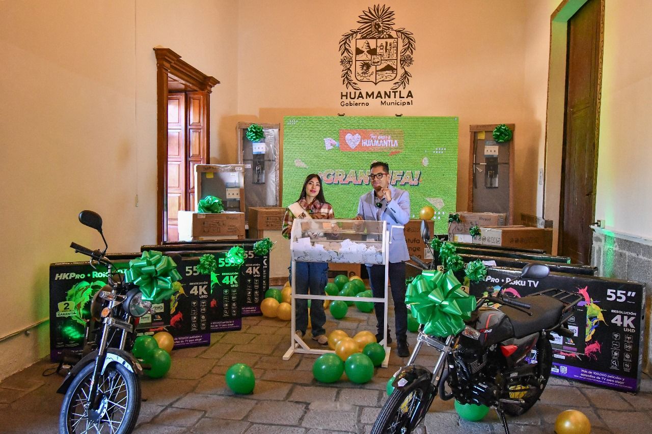 De una urna transparente se seleccionaron los ganadores de las ocho pantallas, tres estufas, tres refrigeradores, tres lavadoras y dos motocicletas, los cuales serรกn entregados a partir del prรณximo lunes de 10 a 16:00 horas, en las oficinas de Tesorerรญa, ubicadas en el Callejรณn Margarita Maza de Juรกrez.