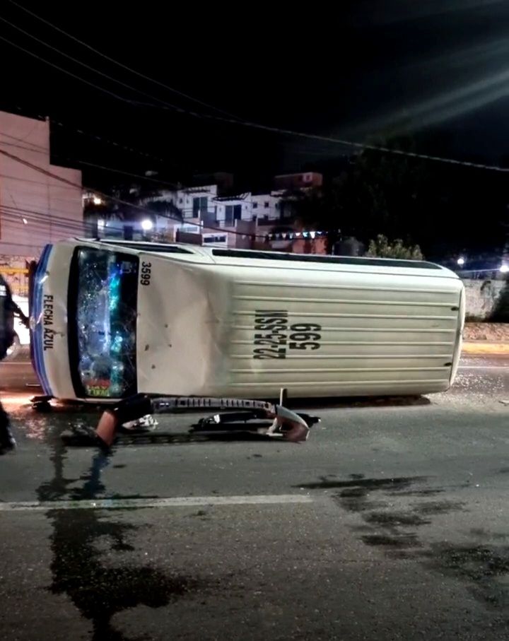 Algunos pobladores enardecidos volcaron dicha unidad responsable como presion para que fuera detenido el conductor ya que trasciende se diรณ a la fuga.
