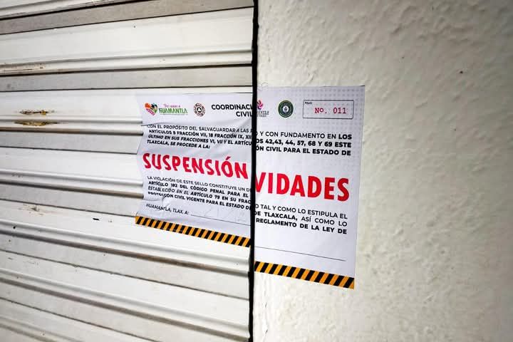 Como parte de estas acciones, personal de Protecciรณn Civil colocรณ sellos de suspensiรณn de actividades en un negocio denominado ยซRey de la Curaยป, ubicado en el Bulevar Cuamanco, debido a que no contaba con su licencia de funcionamiento vigente.