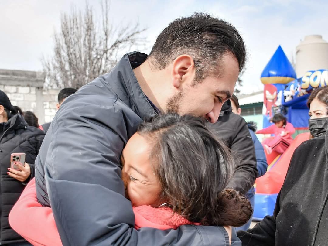 En la colonia Altamira de Guadalupe, los pequeños, bien abrigados con gorros y bufandas, esperaron con ilusión su regalo. Muñecas, superhéroes y juegos de mesa fueron los favoritos, entregados también por la Síndico, Brizeyla Iveet Rodríguez López.