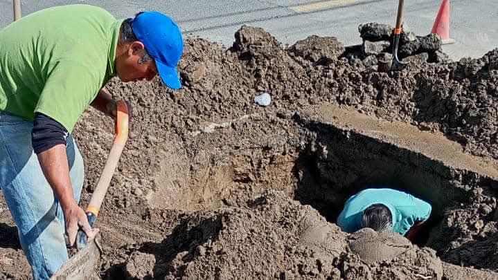 La reparaciรณn consiste en la sustituciรณn de un tubo de 8 pulgadas que conduce agua a estas importantes zonas del municipio, por lo que se ha retirado el asfalto en esta รกrea.
