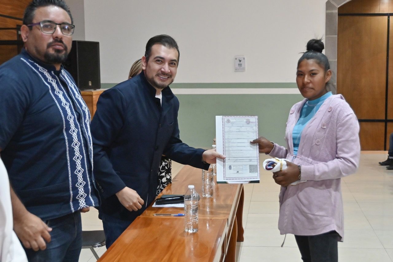 Finalmente, las autoridades realizaron la entrega simbรณlica de actas de nacimiento a menores de edad y adultos mayores, felicitรกndolos por regularizar su identidad a travรฉs de las campaรฑas impulsadas por el Ayuntamiento de Huamantla.