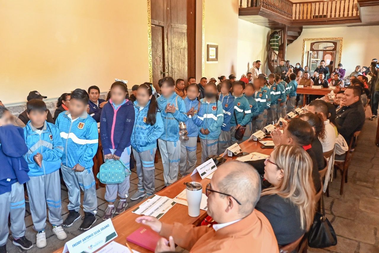En esta ocasión, estudiantes de la Escuela Primaria “Benito Juárez” visitaron el Palacio de Gobierno Municipal y tuvieron la oportunidad de presenciar parte del desarrollo de esta importante sesión de Cabildo a invitación del Presidente Salvador Santos Cedillo.