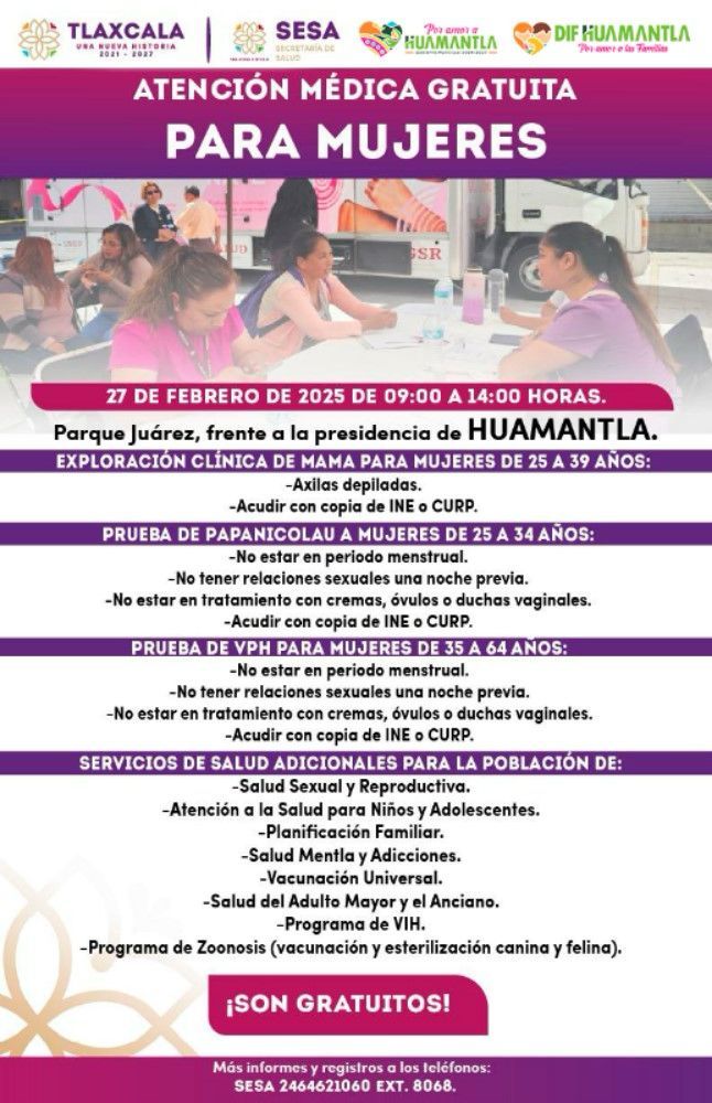 26/02/2025| ๐Ÿ’—๐Ÿ‘ฉโ€๐Ÿ’ผ๐Ÿคตโ€โ™€๏ธA fin de acercar servicios de salud esenciales para la poblaciรณn, promover la prevenciรณn y el bienestar, el Gobierno Municipal de Huamantla, a travรฉs del Sistema Municipal para el Desarrollo Integral de la Familia (SMDIF), invita a la ciudadanรญa a participar en la Macrojornada de Atenciรณn Mรฉdica Gratuita, que se llevarรก a cabo este jueves 27 de febrero en el Parque Juรกrez, a partir de las 9:00 horas.