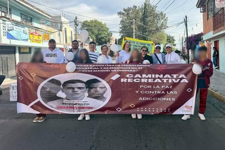 31|MAR|2025|En un esfuerzo conjunto para prevenir el consumo de fentanilo entre los jóvenes, el Gobierno de Huamantla y el Centro de Bachillerato Tecnológico, Industrial y de Servicios (CBTis) No.61, organizaron la mañana de este lunes la «Caminata por la Paz y Contra las Adicciones» en el centro de la ciudad, como parte de la campaña nacional «Aléjate de las Drogas, el Fentanilo Mata».