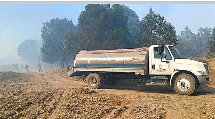 10|ABR|2025| La ComisiΓ³n de Agua Potable y Alcantarillado del Municipio de Huamantla (CAPAMH) a travΓ©s de su director AndrΓ©s Carmona LΓ³pez realiza acarreos de agua a travΓ©s de dos camiones cisterna, a fin de contribuir al sofocamiento del incendio registrado la tarde de este jueves en el cerro Β«QuimichoΒ» solidarizΓ‘ndose con el municipio vecino de TocatlΓ‘n.