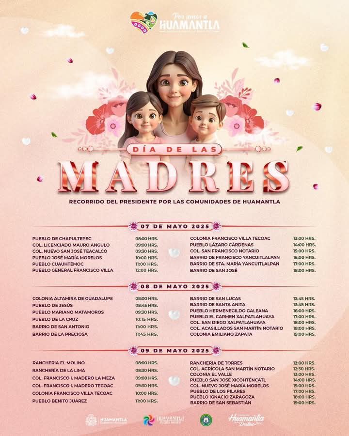 04/MAYO/2025|Como una forma de reconocer el amor, esfuerzo y dedicaciรณn de las madres huamantlecas, el Gobierno Municipal que encabeza Salvador Santos Cedillo realizarรก una caravana especial de entrega de obsequios en las 39 comunidades de este Pueblo Mรกgico.