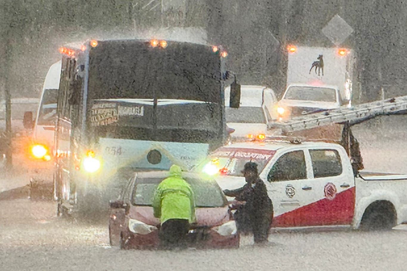 De esta manera, se brindรณ apoyo a un vehรญculo varado bajo el puente ferroviario ubicado en la calle Abasolo, la cual fue cerrada momentรกneamente a la circulaciรณn debido al exceso de agua acumulada.