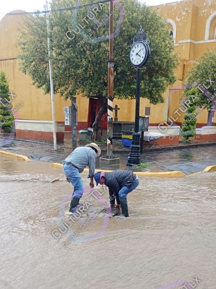 03/JUNIO/2025| Con el objetivo de cuidar la integridad de las personas e inmuebles al originarse un encharcamiento mayor en la cabecera municipal esta tarde de martes brigadas de la CAPAMH realizan en estos momentos labores de limpieza y destape de coladeras para seguridad de conductores y transeรบntes.