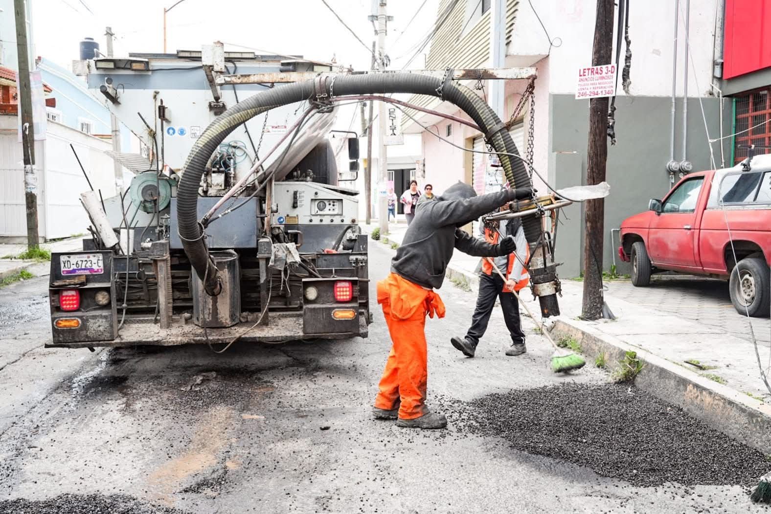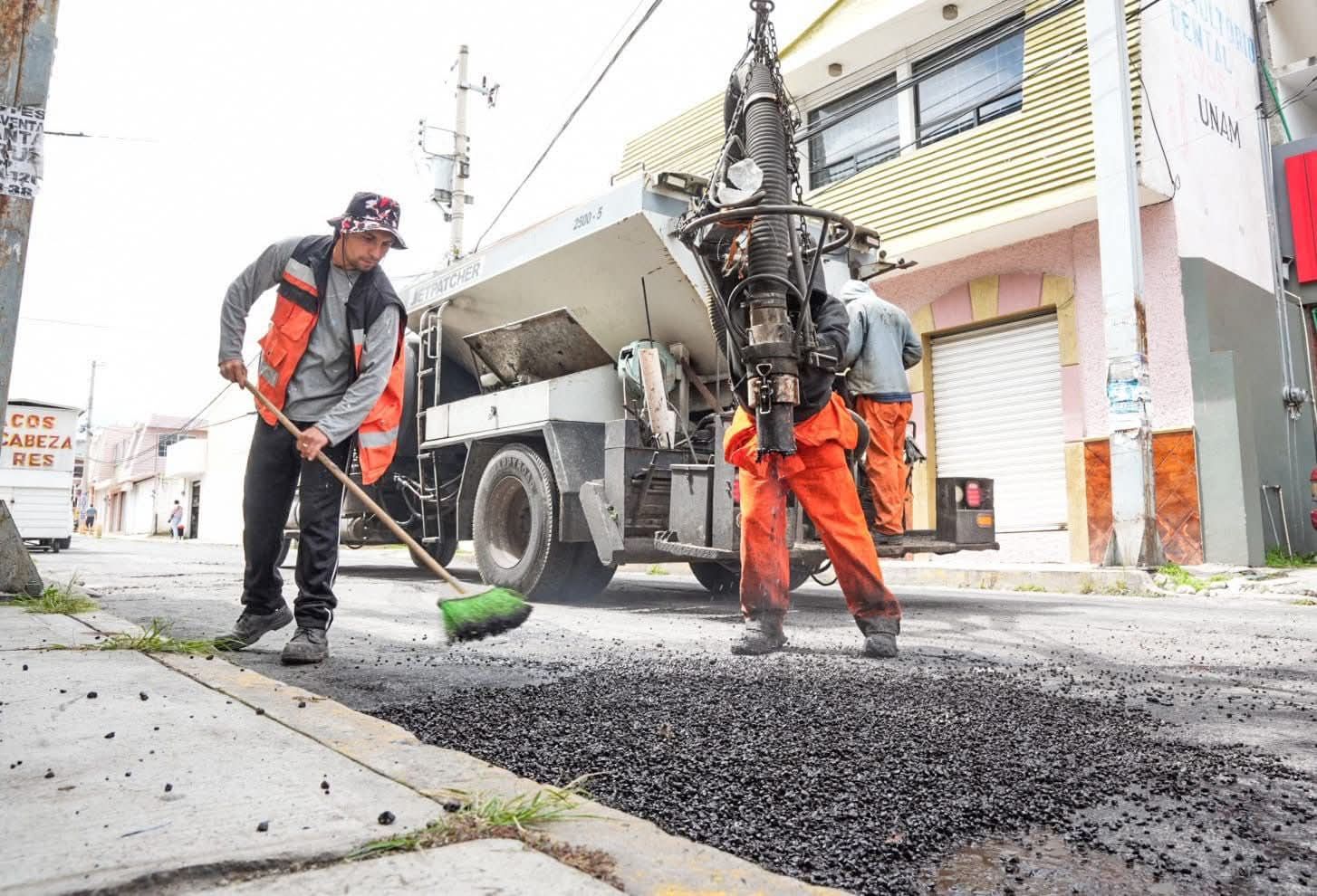 En promedio, se aplican seis metros cΓΊbicos de carpeta asfΓ‘ltica en caliente por cada calle, lo que permite cubrir entre 30 y 40 baches, asΓ se optimiza el uso de los recursos y se garantizan resultados duraderos.