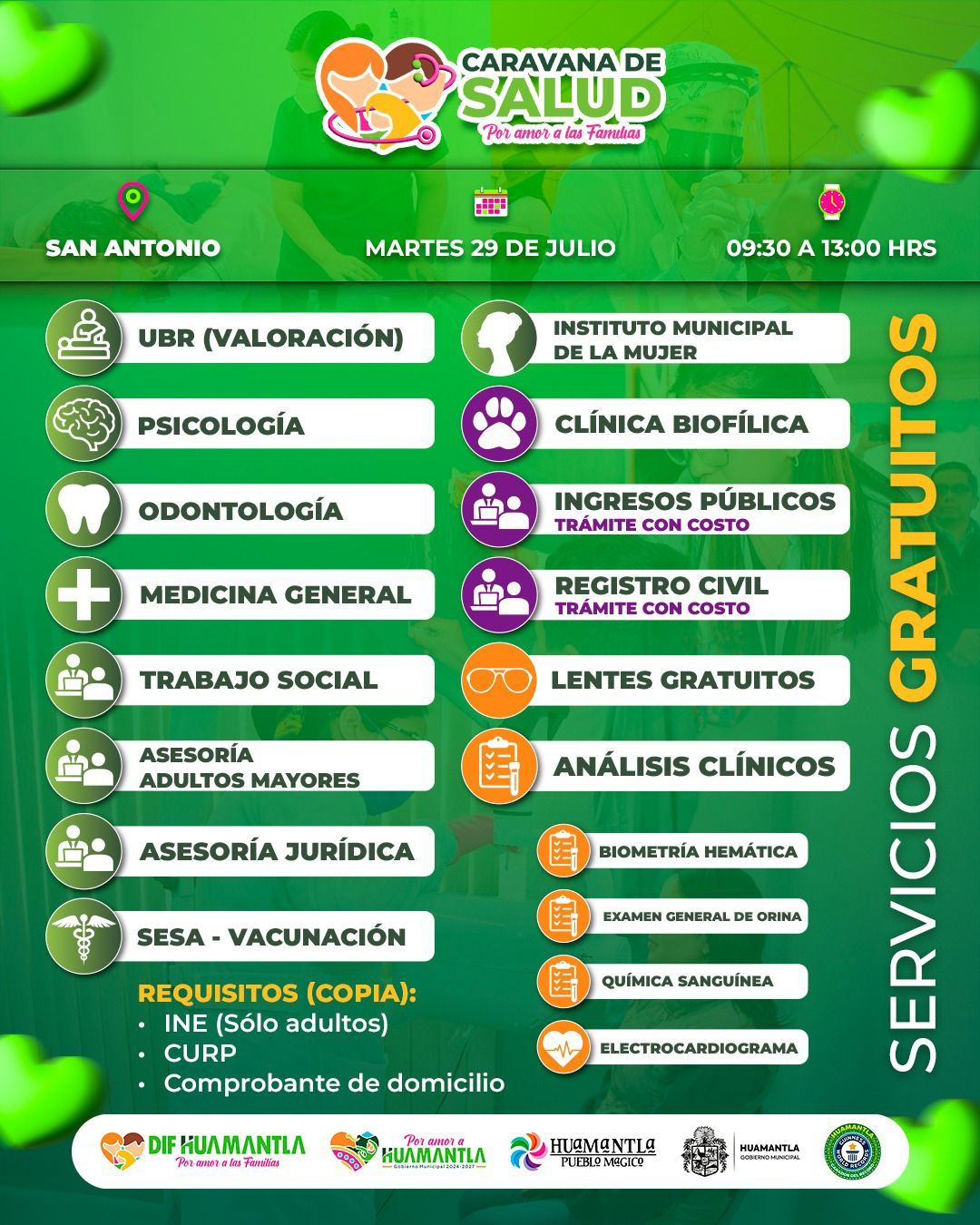 Huamantla, Tlax., 28 de julio de 2025. β Con el compromiso de llevar servicios mΓ©dicos gratuitos y atenciΓ³n directa a quienes mΓ‘s lo necesitan, el Ayuntamiento de Huamantla y el Sistema Municipal DIF continΓΊan recorriendo el municipio con la Caravana de Salud, que en esta ocasiΓ³n llegarΓ‘ a la comunidad de San Antonio.