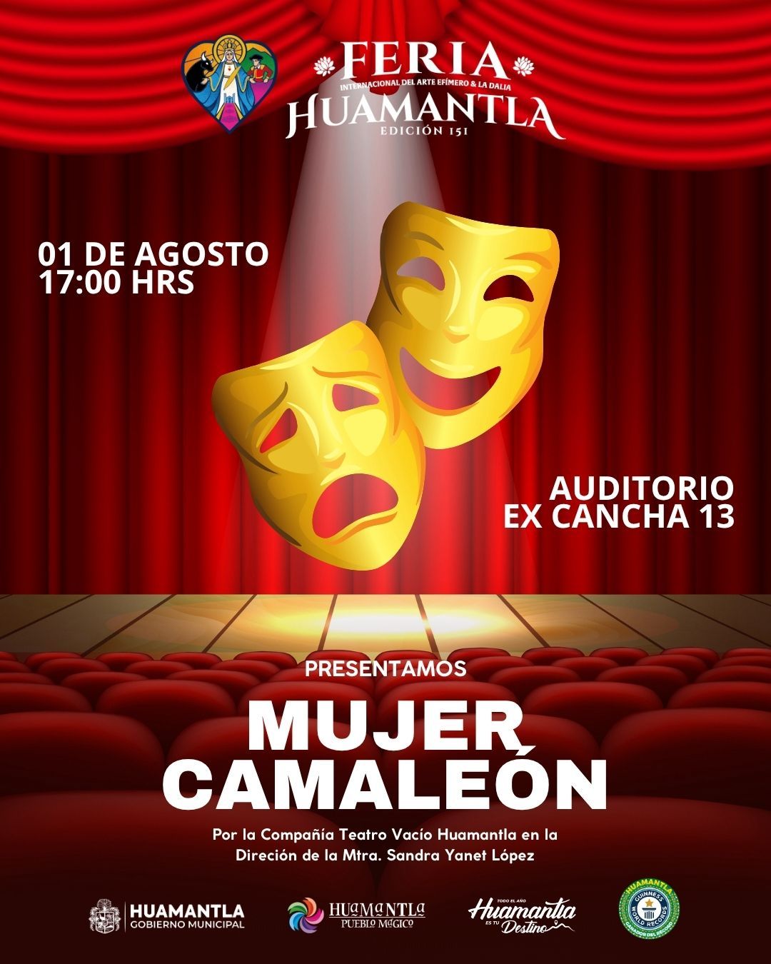En el marco de la Feria Internacional del Arte Efรญmero y de la Dalia Huamantla 2025, se presentรณ la obra de teatro โMujer Camaleรณnโ, una propuesta escรฉnica cargada de simbolismo, fuerza y reflexiรณn, a cargo de la Compaรฑรญa de Teatro Vacรญo Huamantla, bajo la direcciรณn de la Mtra. Sandra Yanet Lรณpez.