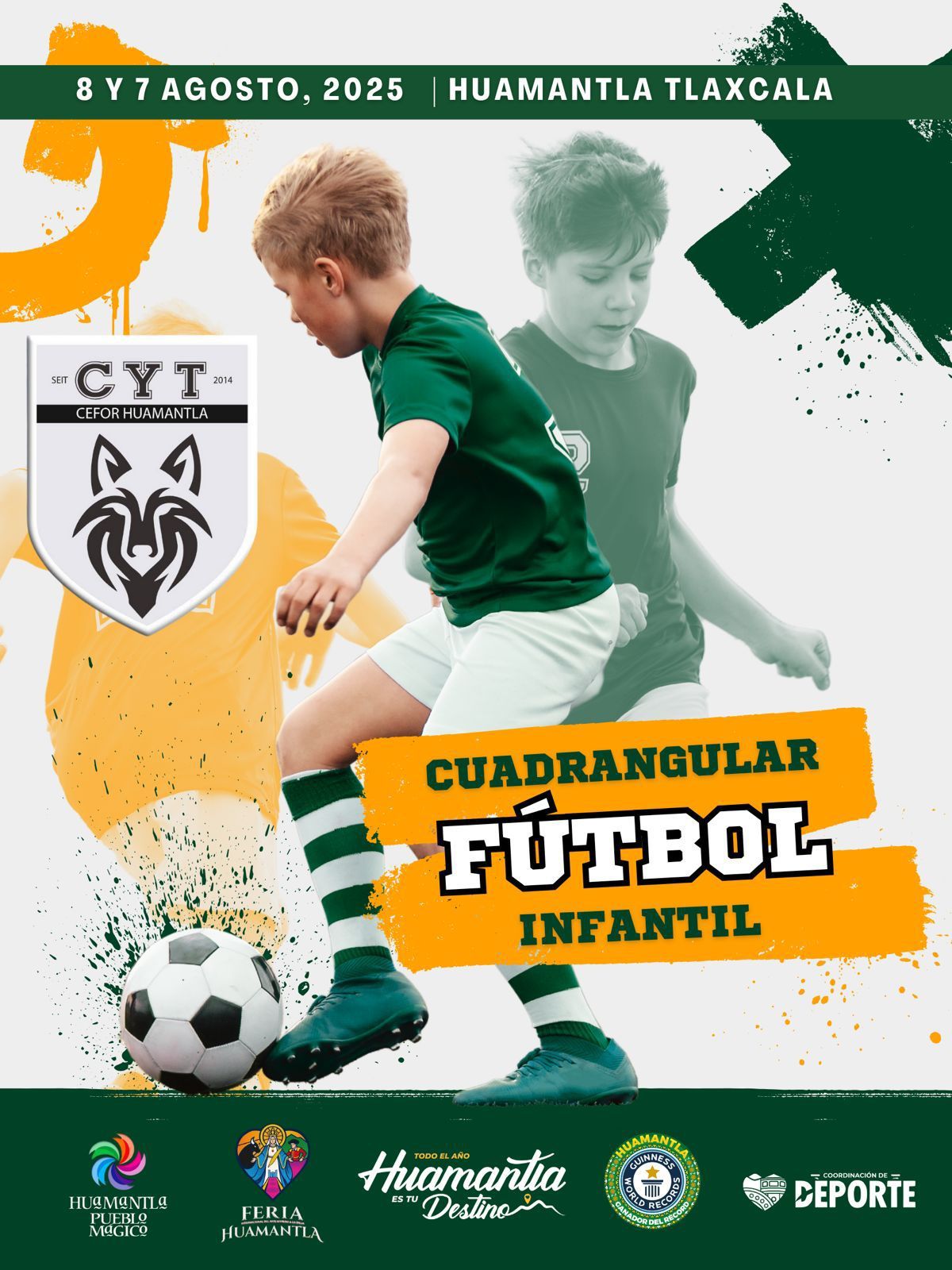 O7/O8/2O25|Como parte de las actividades deportivas de la Feria Huamantla 2025, los días 7 y 8 de agosto se llevará a cabo el Cuadrangular Infantil de Fútbol, un evento diseñado para fomentar el desarrollo físico, la convivencia y la sana competencia entre las nuevas generaciones.