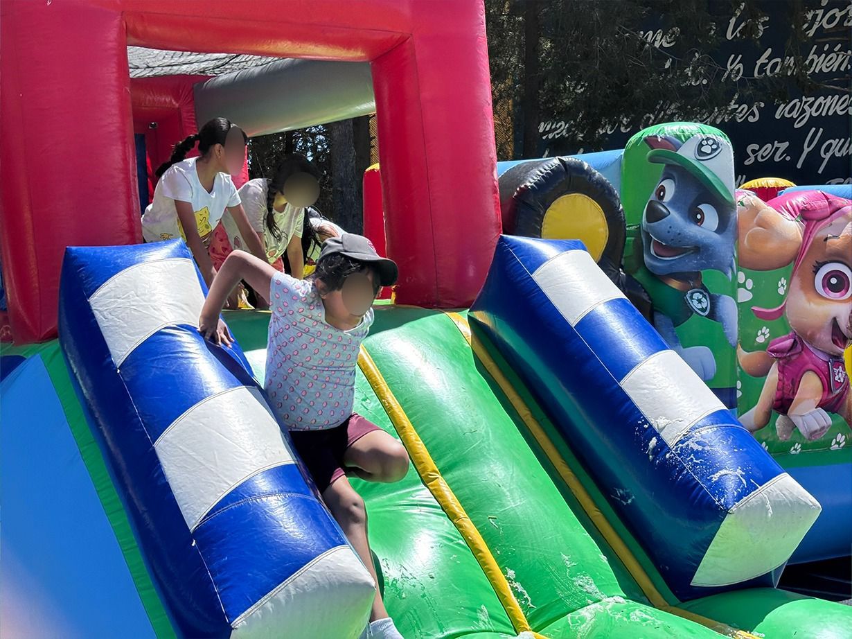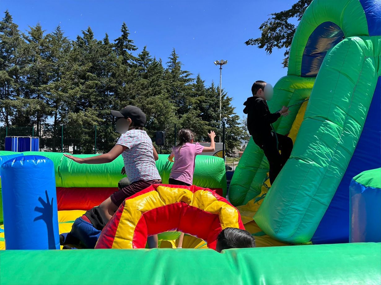 Posteriormente, las y los pequeรฑos disfrutaron de un dรญa inolvidable con juegos inflables y actividades con espuma, que llenaron de risas y energรญa cada rincรณn. Entre carreras, juegos con sus compaรฑeros y momentos de convivencia con sus profesores, terminaron empapados de felicidad, llevando consigo recuerdos que marcarรกn su niรฑez.