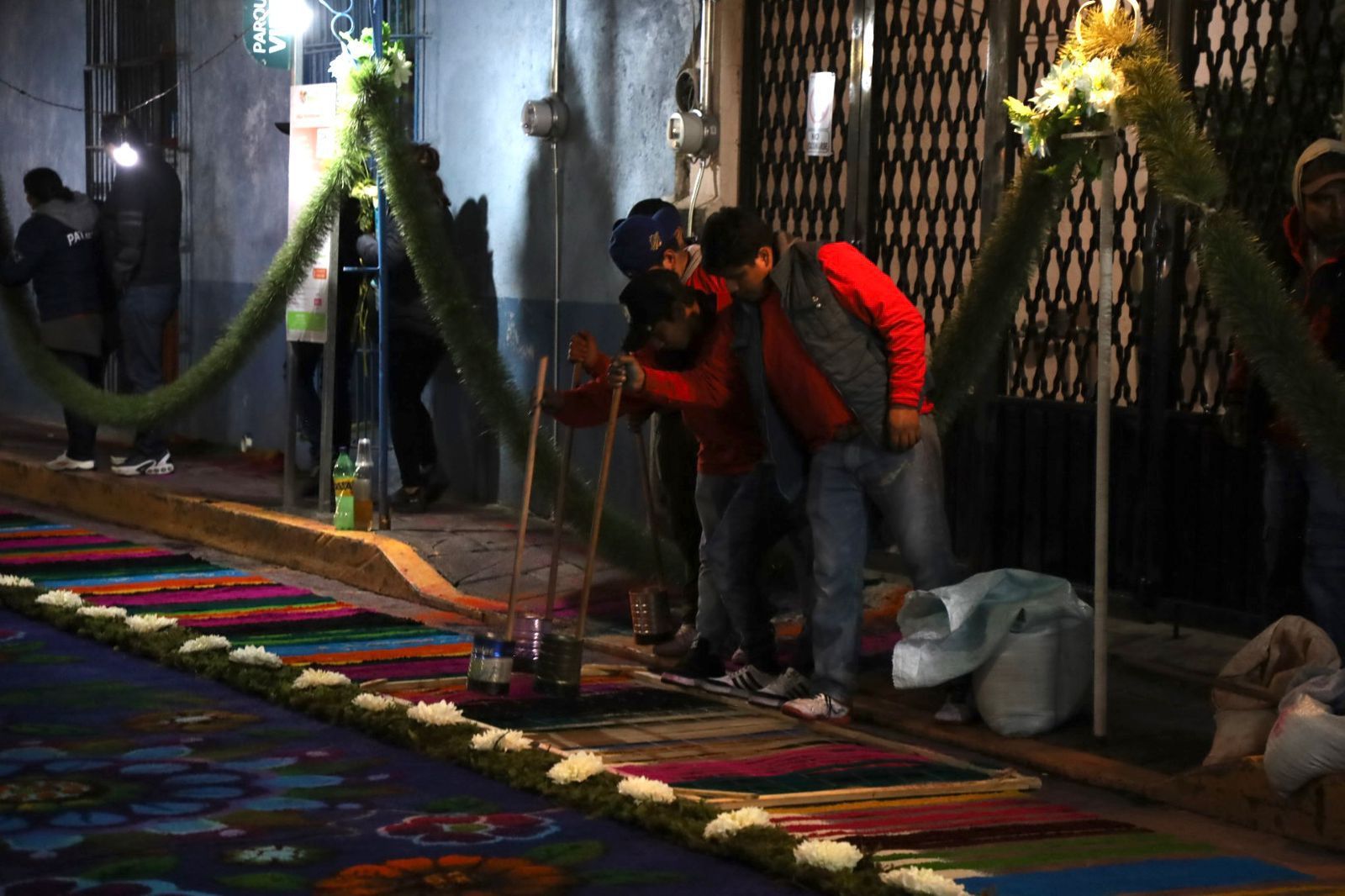 Desde las รบltimas horas del 14 de agosto, mรกs de 900 familias organizadas por calles iniciaron la confecciรณn de obras efรญmeras elaboradas con aserrรญn teรฑido, flores y arenas multicolores, que cubrieron mรกs de siete kilรณmetros del centro histรณrico. Cada tapete reflejรณ el arraigo de las costumbres y la belleza del trabajo artesanal.