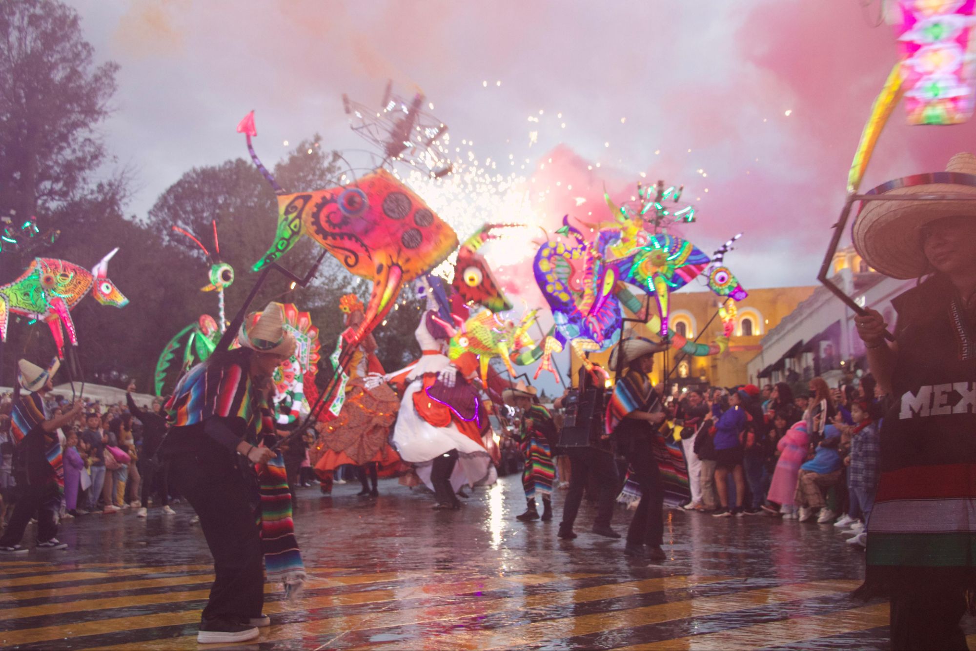 Previo a la Huamantlada, las familias disfrutaron de un ambiente vibrante con la participaciรณn de comparsas, bandas y agrupaciones que llenaron de ritmo cada rincรณn del recorrido, enmarcando asรญ el orgullo de ser parte de la Feria Internacional del Arte Efรญmero y la Dalia 2025.