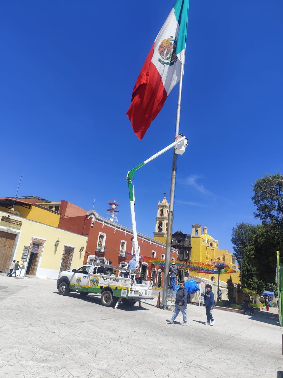 Entre las labores destacan el reemplazo de iluminación en El Toro y en luminarias públicas de la comunidad de San Antonio, así como el mantenimiento y pintura del asta bandera en la explanada municipal, símbolo patrio que representa la unidad y el orgullo de las familias huamantlecas.
