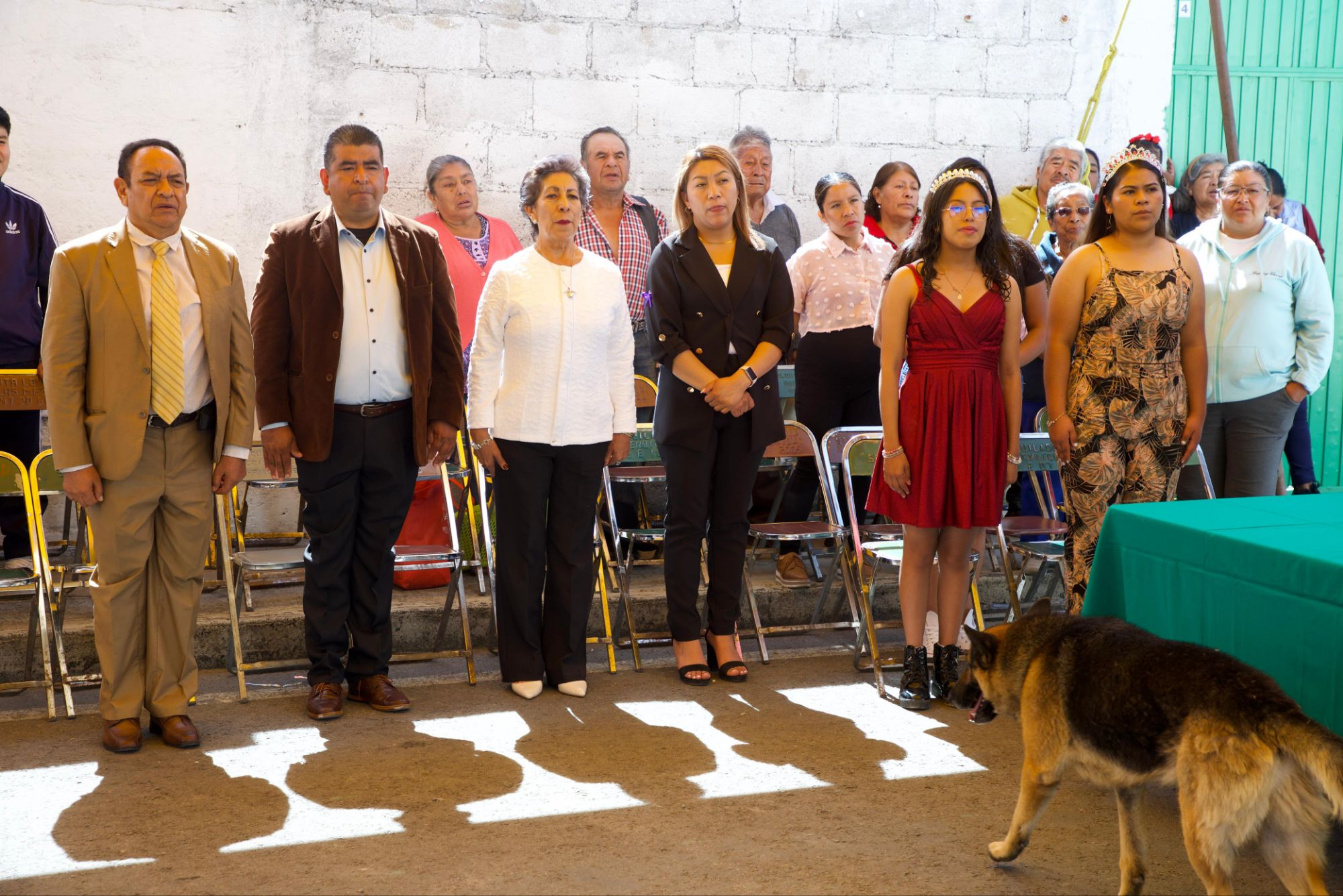 El acto iniciรณ con el izamiento de la Bandera Nacional en el nuevo asta bandera donado por autoridades educativas, procediรณ la entonaciรณn de los himnos de Mรฉxico y Tlaxcala, reafirmando los valores de identidad y unidad que fortalecen a la comunidad.
