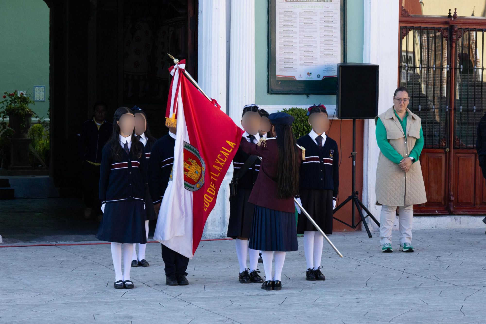 En la explanada municipal, se reuniรณ la comunidad docente y estudiantil de la escuela primaria โ€œGabriela Mistralโ€, quienes con entusiasmo y respeto rindieron homenaje a los sรญmbolos patrios y participaron en el recorrido de la bandera de Tlaxcala mientras interpretaban el himno del estado.