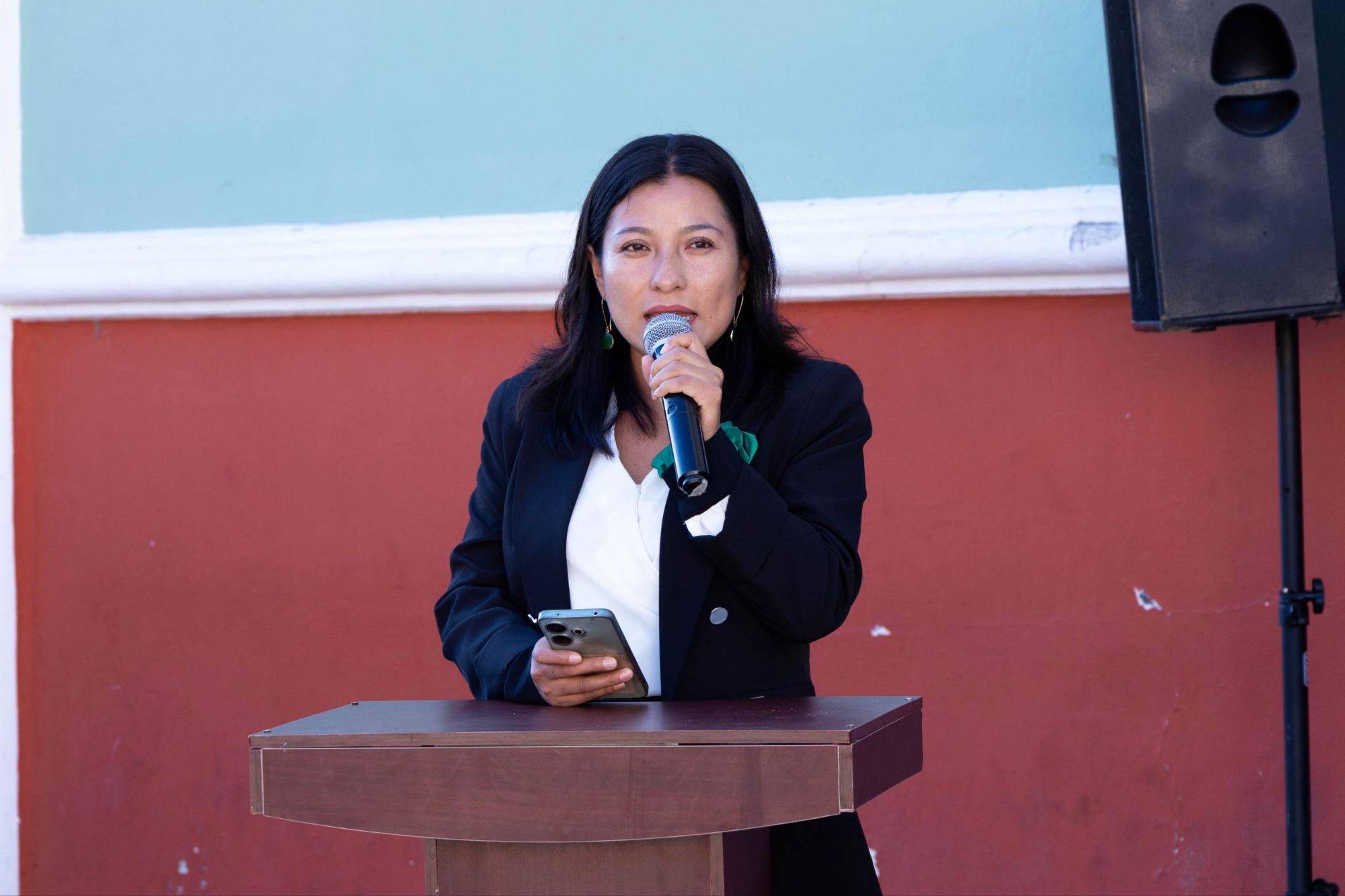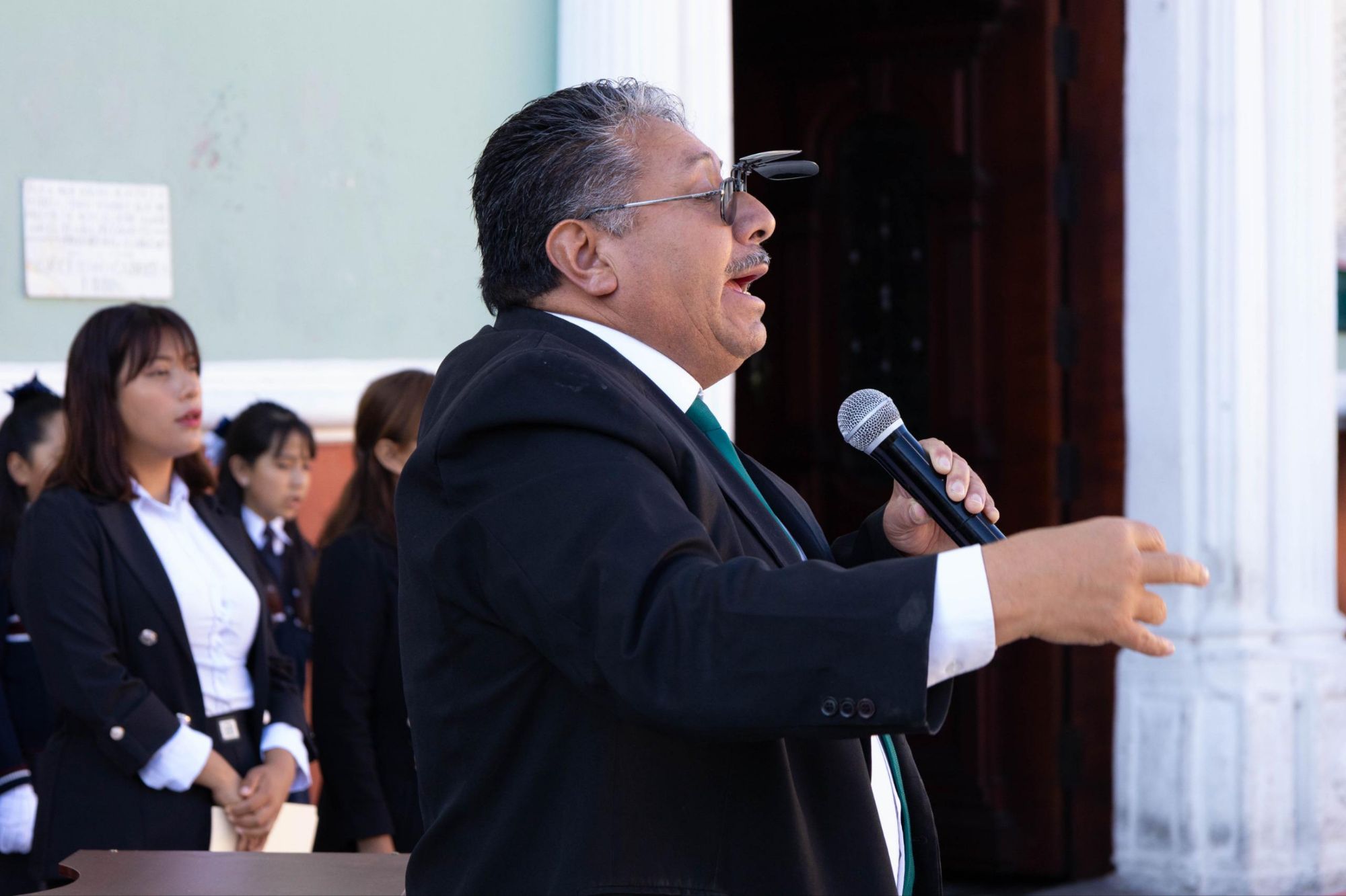Angelica Herrera Filomeno destacรณ que los sรญmbolos patrios dan identidad, al respetar a nuestra bandera y el himno nacional, se fortalece la solidaridad y colaboraciรณn entre las y los habitantes y agradeciรณ la invitaciรณn a participar en este acto cรญvico tan importante.