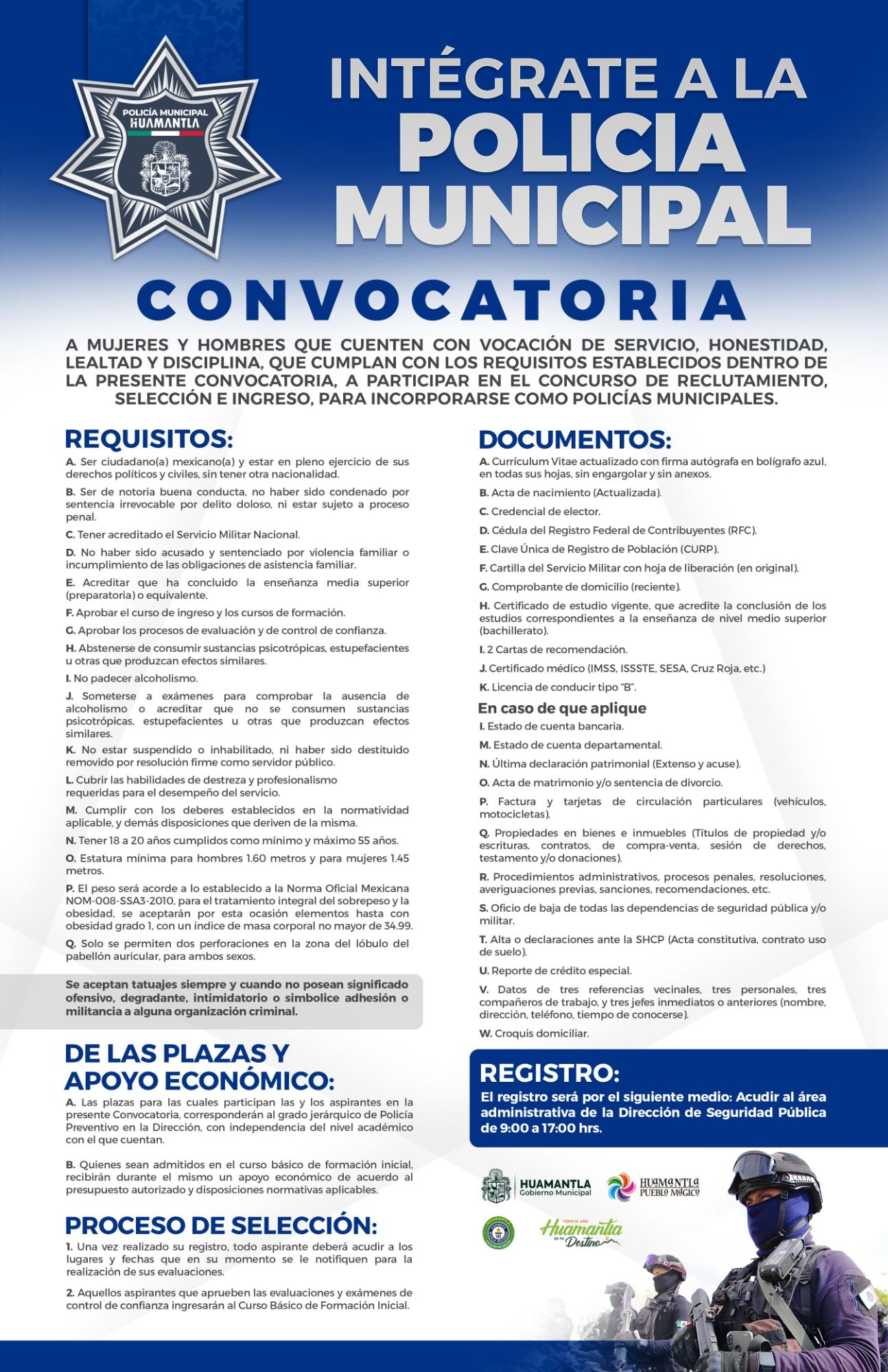 Huamantla, Tlax., a 2 de octubre de 2025. โ€“ El Gobierno Municipal de Huamantla, a travรฉs de la Direcciรณn de Seguridad Pรบblica, Trรกnsito y Protecciรณn Civil, invita a la ciudadanรญa a participar en la Convocatoria 2025 para integrarse a la Policรญa Municipal, con el propรณsito de fortalecer la corporaciรณn encargada de salvaguardar la seguridad y el orden en la ciudad.