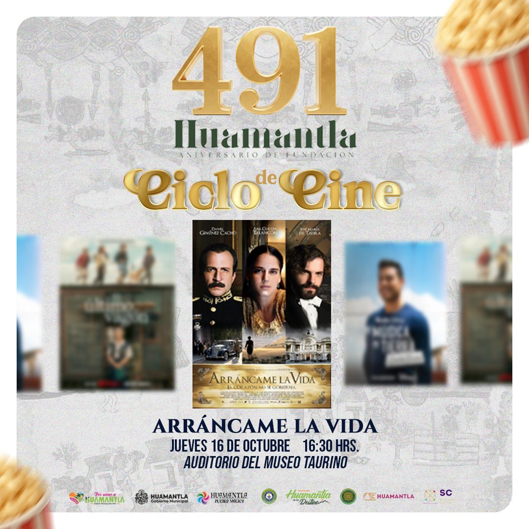 Por la tarde, a las 4:30 p.m., en el mismo recinto, se proyectarรก la pelรญcula โArrรกncame la vidaโ, dentro del Ciclo de Cine โConoce Huamantlaโ, una obra del cine mexicano que resalta la fuerza de la historia y la cultura nacional.