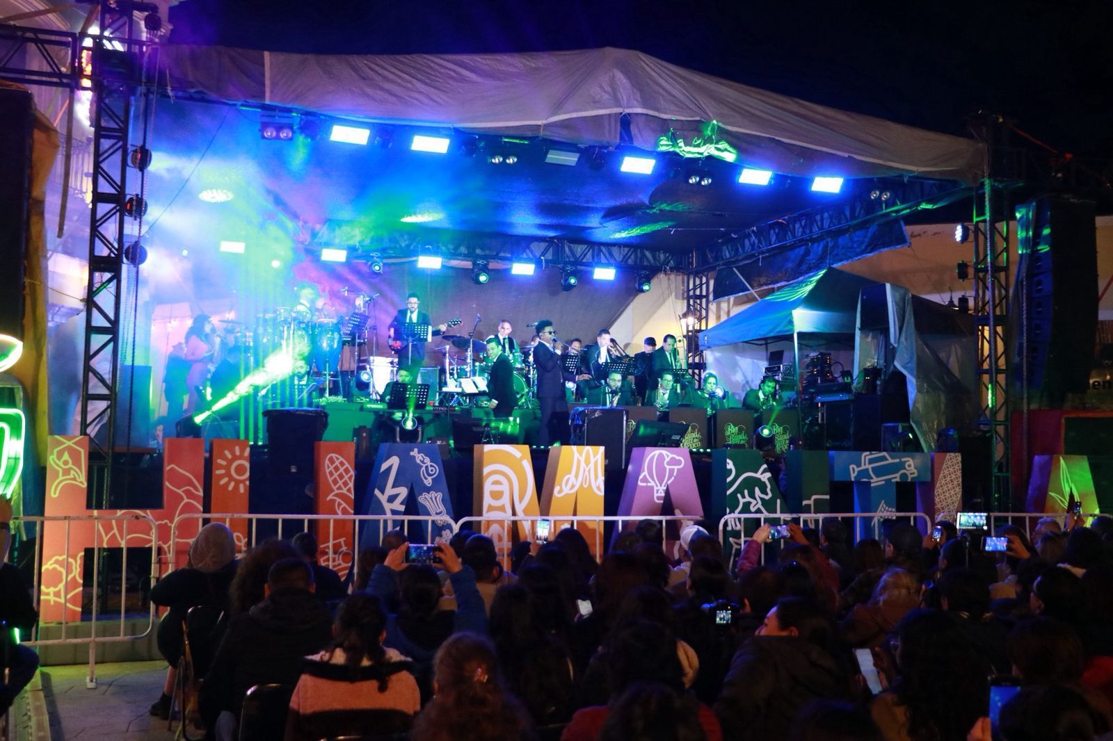 Huamantla, Tlax.- En una noche llena de música, alegría y orgullo huamantleco, el Parque Juárez fue escenario del magno concierto de la Big Band Jazz con la participación especial de Kalimba, en el marco de los 491 años de la fundación de Huamantla.