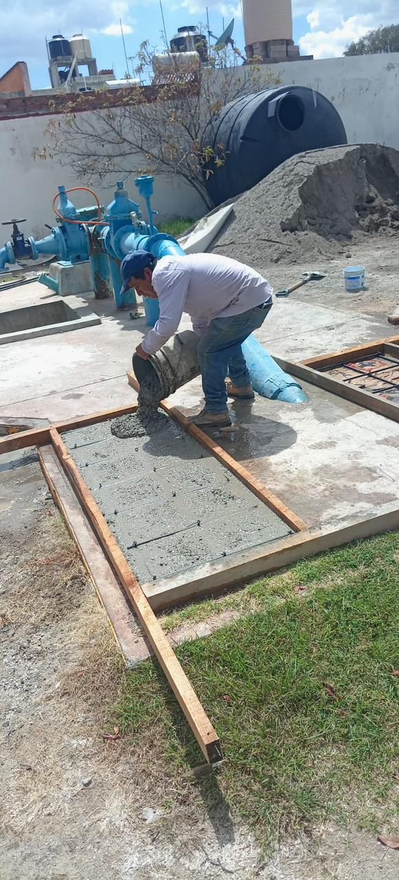 Asimismo, se aplicó concreto en Calle Victoria Norte para reforzar las tapas de las lagunas de oxidación, y se llevó a cabo el reacomodo de tapas en distintas zonas, con el fin de mejorar la seguridad y el correcto funcionamiento del sistema hidráulico.