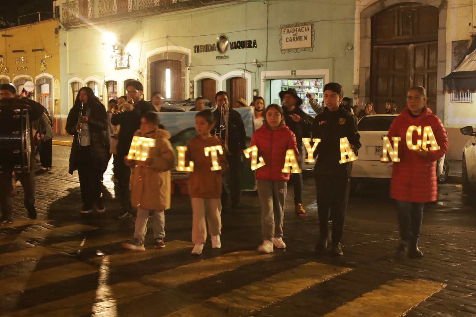 La celebración, que dio inicio a las 8:00 de la noche, reunió a familias huamantlecas, servidores públicos, autoridades municipales, así como a delegaciones culturales de los municipios de Altzayanca y Papalotla, en un recorrido lleno de música, color y alegría por las principales calles del centro histórico.