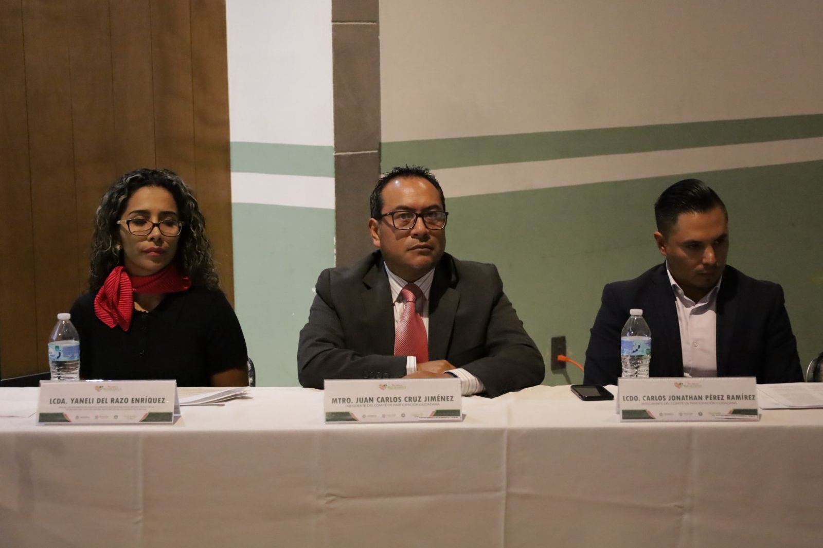 El evento estuvo encabezado por la Lcda. Yaneli del Razo Enríquez, jefa del Departamento de Asuntos Jurídicos y en funciones de la secretaria técnica del SAET; contó con la ponencia del Lic. Carlos Jonathan Pérez Ramírez y con el mensaje institucional del Mtro. Juan Carlos Cruz Jiménez, integrantes del comité de participación ciudadana.