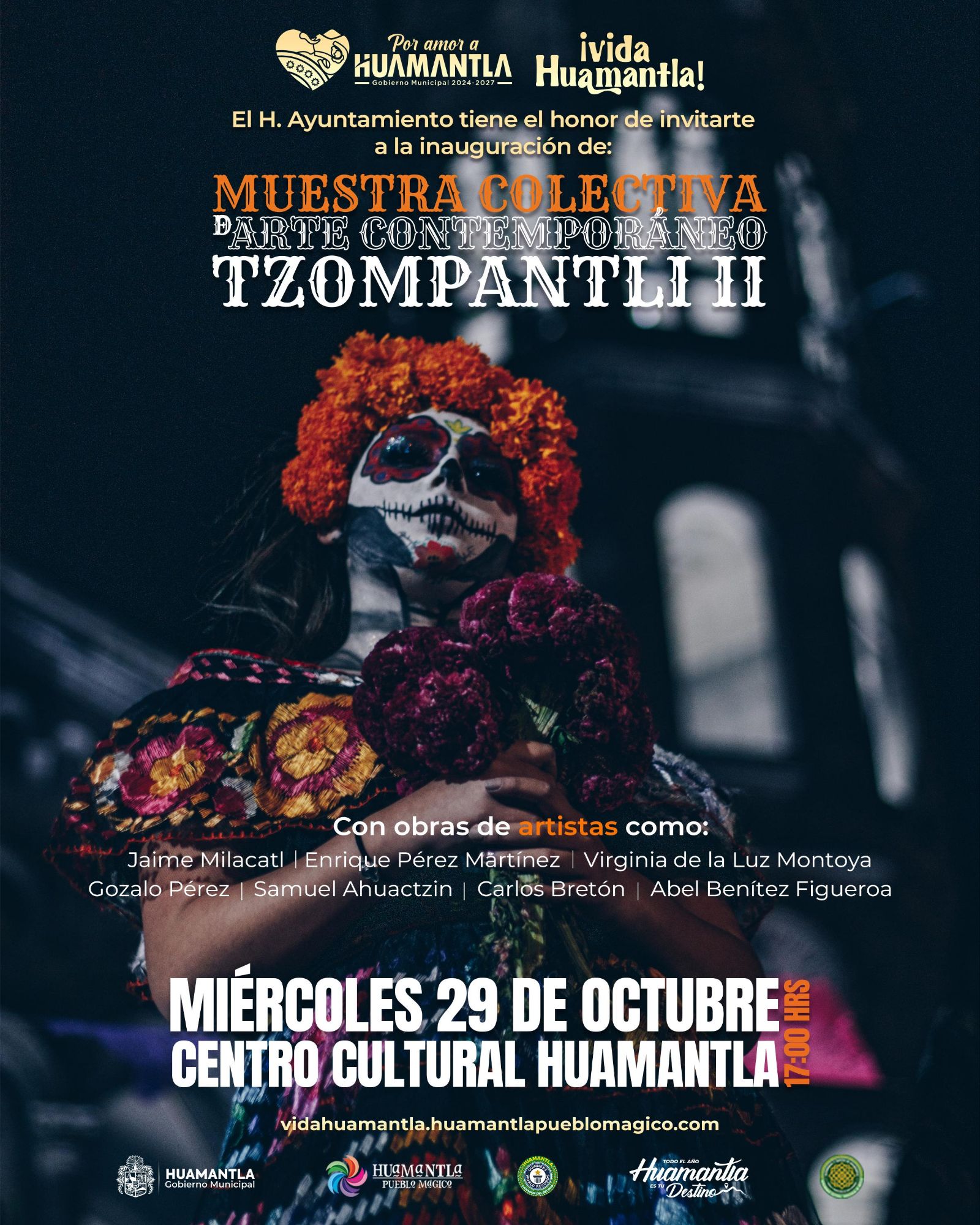 En el marco del Festival “Vida Huamantla”, el H. Ayuntamiento de Huamantla invita a la ciudadanía a la Muestra Colectiva de Arte Contemporáneo “Tzompantli II”, que se llevará a cabo este miércoles 29 de octubre a las 17:00 horas, en el Centro Cultural Huamantla.